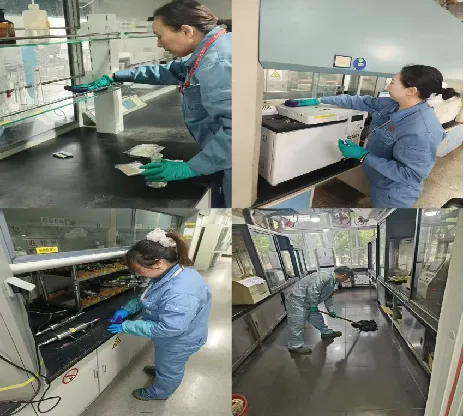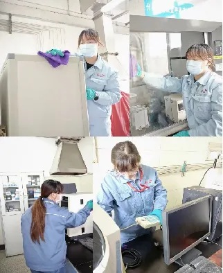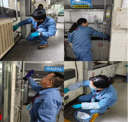 炼化检验室、标准化室分别完成柜顶、窗槽等卫生死角清扫及仪器设备清洁除垢,各分析岗位现场整洁见本色,“三标” 工作环境建设成效显著。