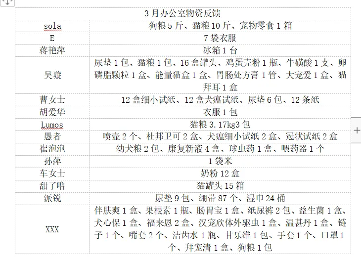 办公室3月份接受物资