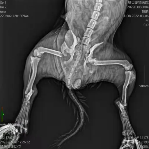 3月6日领养日的时候接到求助,救助组组长广陵糖与其他成员一同前往现场救助,送院后拍片结果为后脚和盆骨都有骨折,目前狗狗已经做完手术恢复良好,但后腿残疾无法送养,协会基地接收。