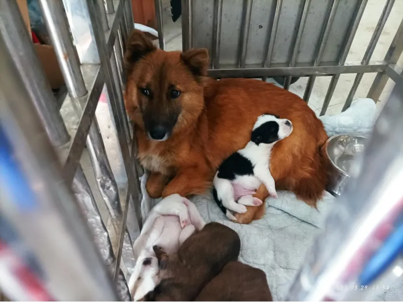 3月29日协会接到求助,师大瑶湖校区1只母犬及4只奶狗被校方强行送至派出所,协会专职圆欢和救助组涂艳承前往派出所协调将其接出,目前已安排寄养并后期送养。