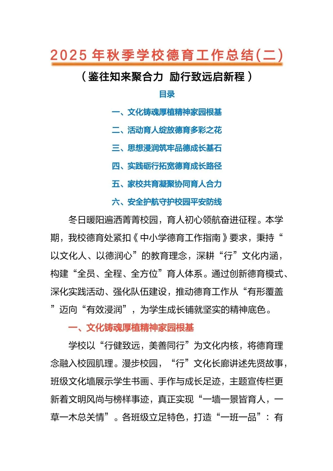 >2025年秋季第一学期学校德育工作总结PPT+逐字稿(一):鉴往知来聚合力,励行致远启新程