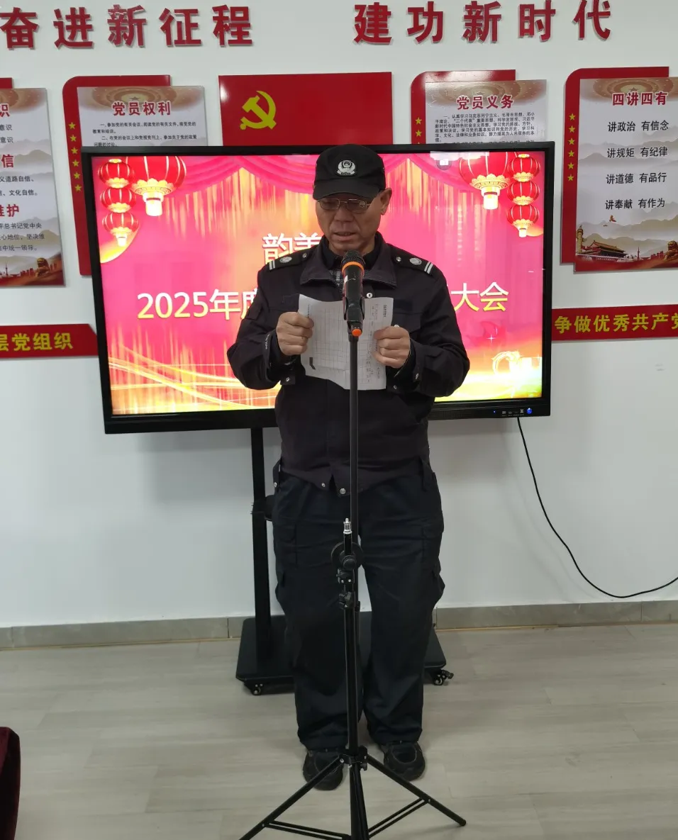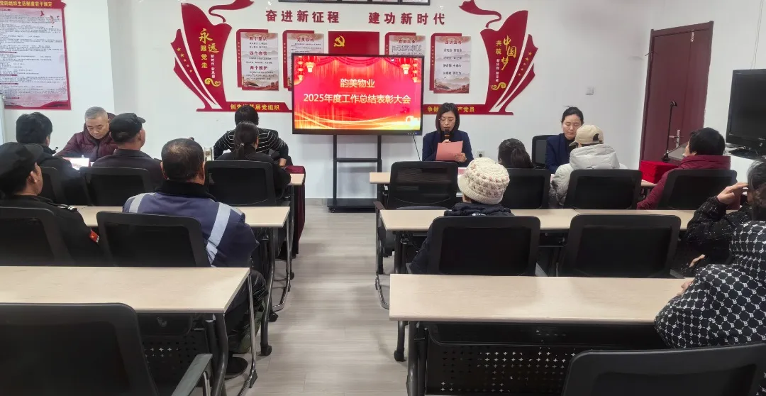 韵美物业总经理助理康守东对2025年工作进行了总结,对2026年重点工作予以安排部署。过去的一年,从晨光熹微的园区巡检,到夜深人静的应急抢修;从细致入微的业主服务,到有条不紊的设施维护,每一位物业人都在用汗水抒写担当,用坚守诠释责任。2025年,韵美物业紧紧围绕“提升服务品质、打造宜居环境”的核心目标,扎实推进各项物业服务工作,在全体员工的共同努力下圆满完成了年度既定任务,同时得到了社会各界和广大业主的一致好评与认可。在新的一年里,公司上下要继续携手奋进、推陈出新,将整个工作提升到一个新高度,跨入阶段,再创佳绩!