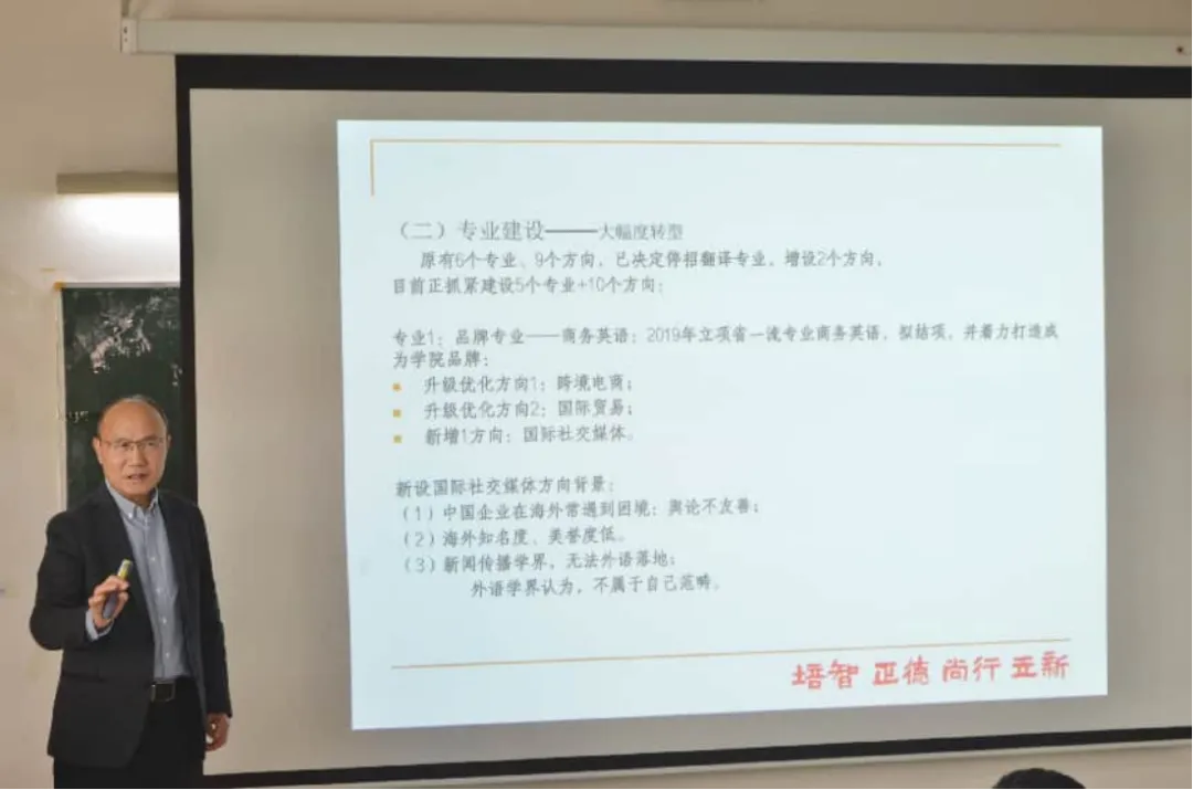 曹院长着重指出,学院在发展中仍面临党建工作创新力度有待加强、高层次师资与高水平科研项目相对不足、实验教学条件仍需改善、部分教职工的进取精神有待进一步提高等问题。围绕下一步发展,曹院长系统部署了2026年十一项重点工作,强调要以“强化党建引领、优化人才培养、深化产教融合、加强师资建设、提升科研水平、拓展国际办学、打造学院品牌”为核心路径,着力构建“培正外语”品牌,以口语能力为突破口,以跨境电商、国际社交媒体、双语教育等为支撑,力争至2030年在广东省内形成广泛影响力。