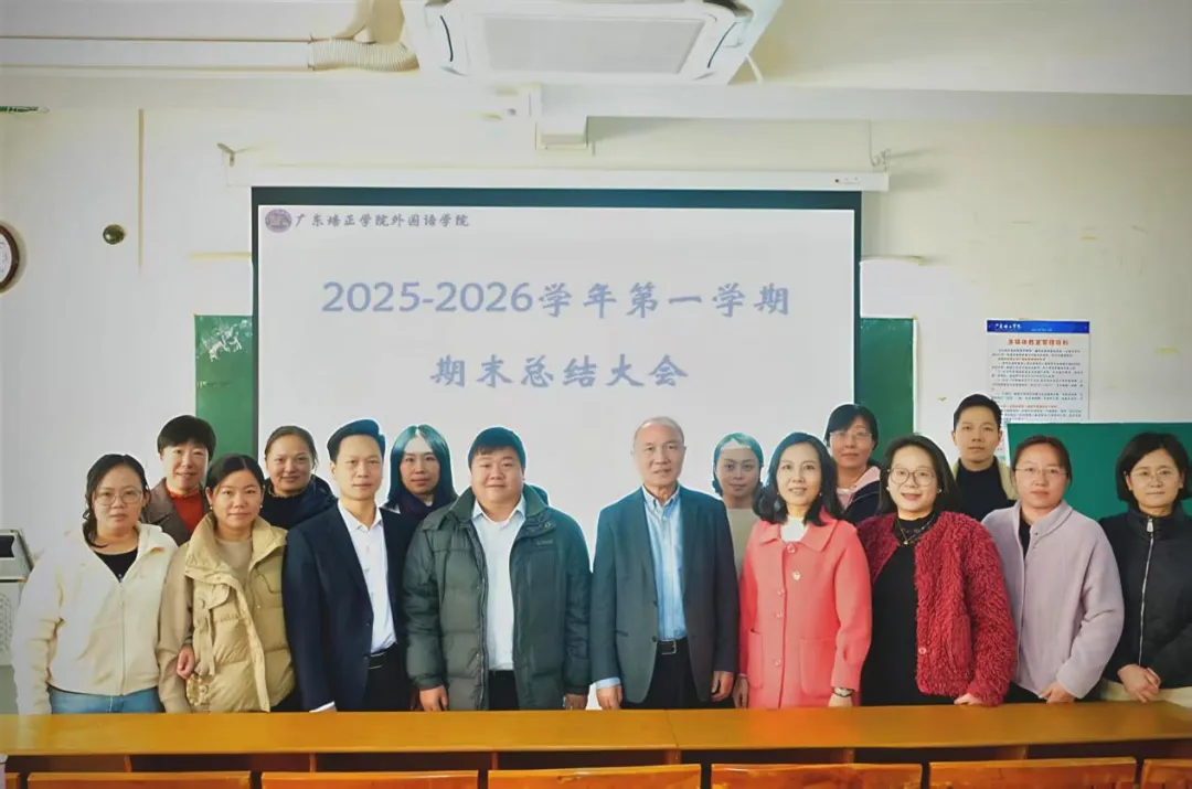 2026年1月9日下午2点30分,外国语学院在2411召开2025年工作总结大会,出席本次会议的领导嘉宾有广东培正学院副校长梁嘉熹、外国语学院院长曹德春、外国语学院党委书记陈橹、外国语学院副院长张妤、外国语学院副院长李细妹。外国语学院全体教职工参加了会议。会议由外国语学院党委书记陈橹主持。