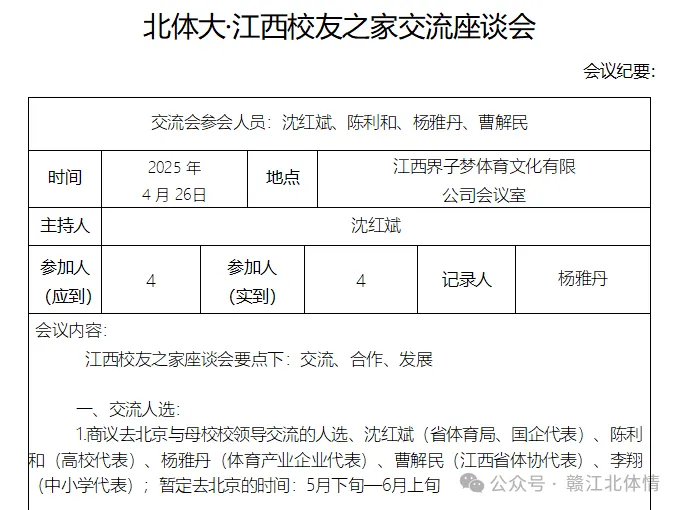 校友会是所有在赣北体人的共同事业与情感纽带。未来将继续发挥桥梁作用,助力学子就业发展,整合校友资源,努力建设成为温暖、可信赖的校友家园。