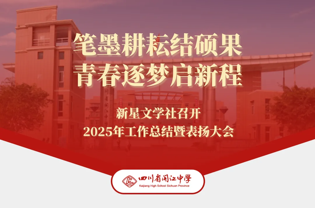 2026 年 1 月 18 日下午 4 点,四川省开江中学新星文学社 2025 年工作总结暨表扬大会在三楼学术厅隆重举行。本次大会由新星文学社社长曾瑜主持,相关领导、文学社工作人员、2025 年干事、获奖学生及 2025 级会员齐聚一堂,共同回顾文学社年度发展历程,表彰优秀社员,规划未来发展方向。