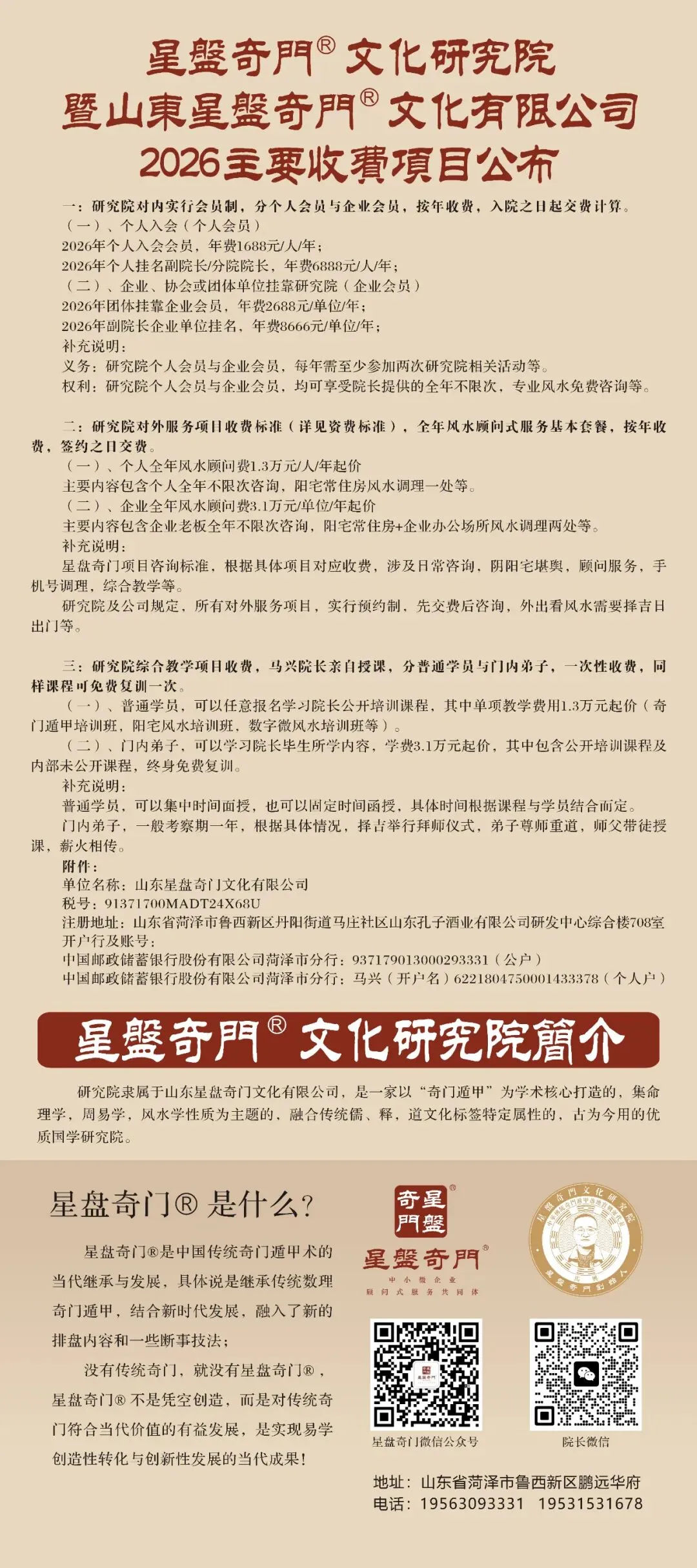 星盘奇门®文化研究院:学术、业务,文创等说明2026(结缘必看)