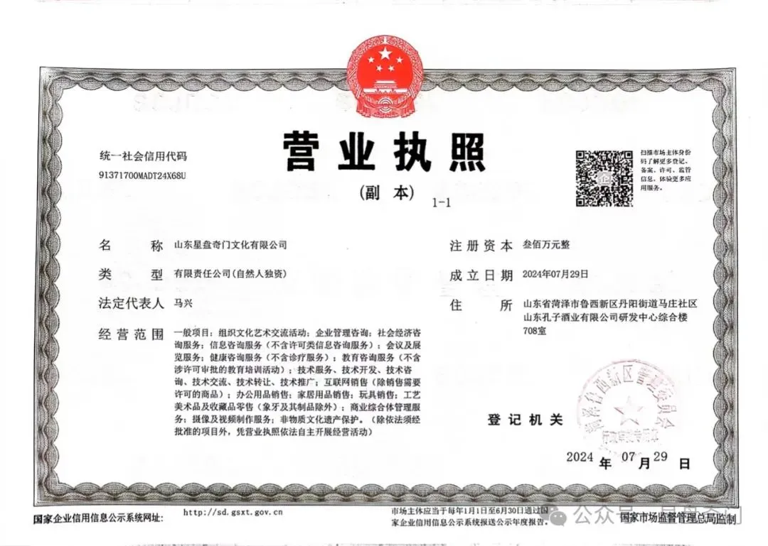 除此之外,星盘奇门®还将合法合规开展文化艺术交流活动等公司营业执照允可的正常业务活动等