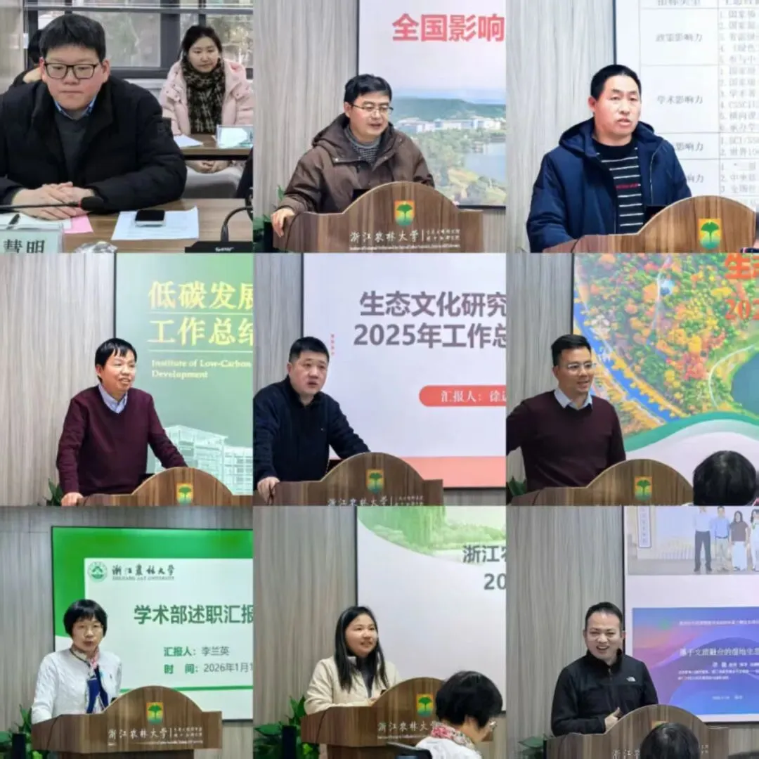 此次会议的顺利召开,不仅全面盘点了研究院 2025 年的发展成果、客观分析了存在的短板,更清晰明确了 2026 年的工作重点,同时通过 “十五五” 规划研讨会,深入研讨了长远发展目标与核心任务、征集了多方建议,为下一阶段的布局谋篇凝聚了共识。相信在全体成员的共同努力下,研究院必将在生态文明研究领域持续突破,既稳步推进年度任务落地,也扎实筑牢 “十五五” 发展根基,为推动我国生态文明建设、深化 “两山” 理念实践贡献更多浙江智慧与农林力量。