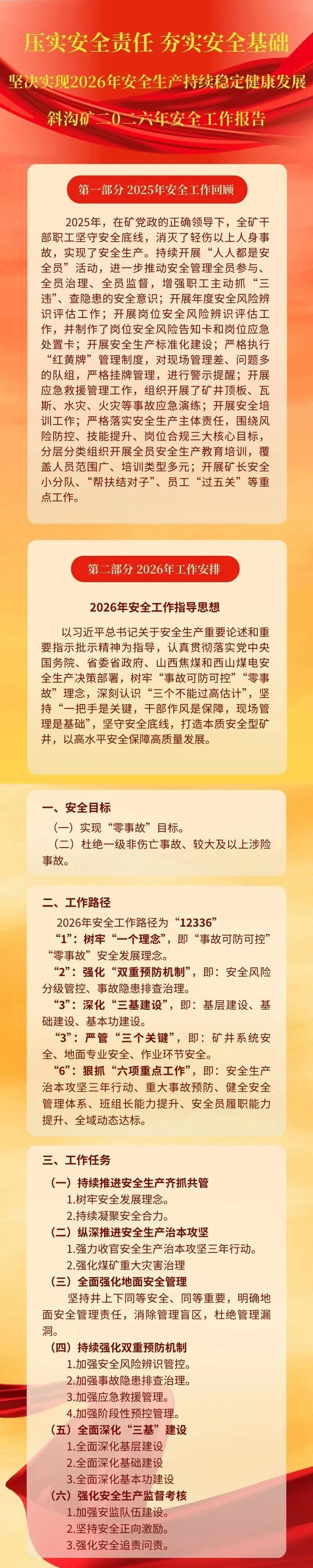 【图解】斜沟矿二0二六年安全工作报告
