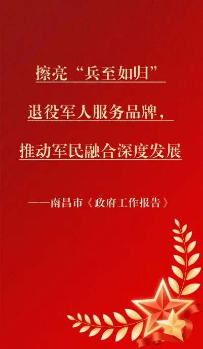 作为军旗升起的地方,人民军队诞生地,我市用心用情服务广大退役军人和军人军属,创新推出“兵至如归”退役军人服务品牌,把南昌打造成军人一生必到的天下英雄城。