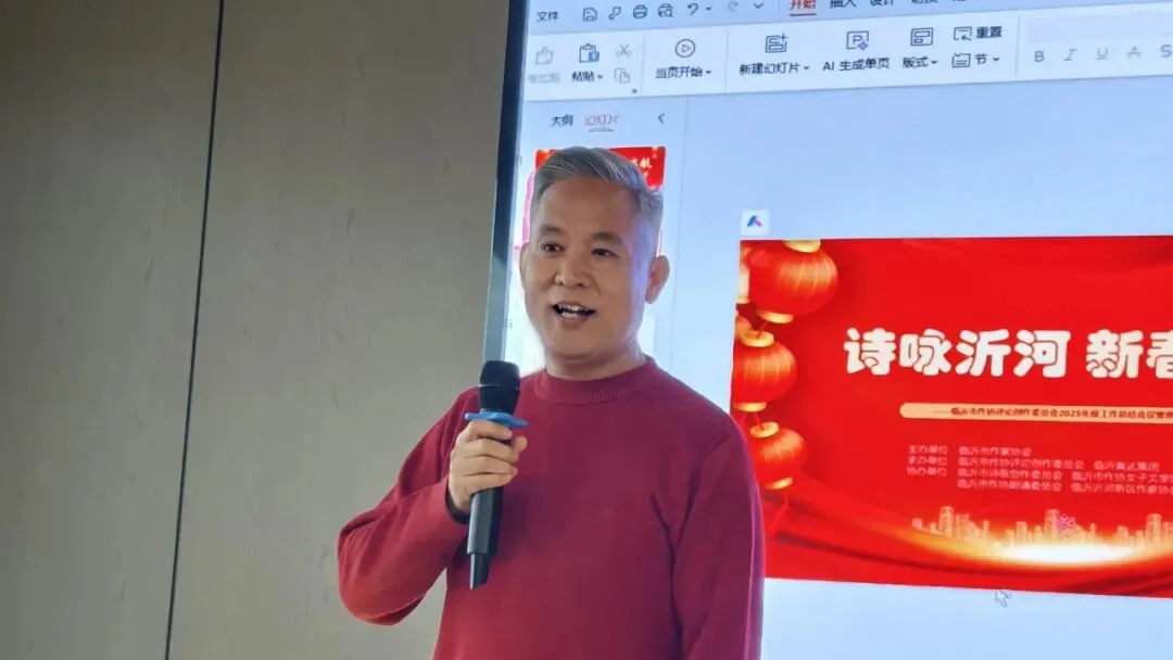 ▲诸葛祥金朗诵的雁阵作品《临沂奥达集团赋》,以大气磅礴的笔触赞美了企业的责任担当与发展成就,将诗会气氛推向高潮。