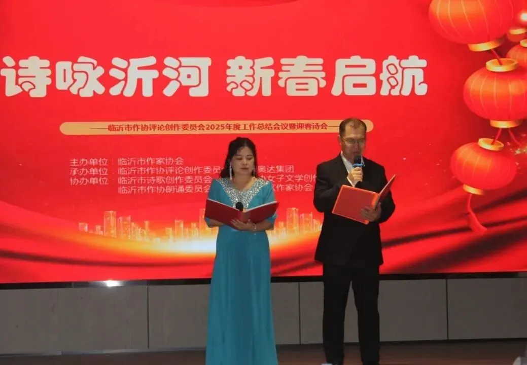 ▲ 孙小雯、诸葛祥金联袂朗诵的《你好,新年》,传递出对新春的美好期盼,拉开了迎春诗会的序幕,让新春的喜悦与沂蒙山水的灵秀相得益彰。