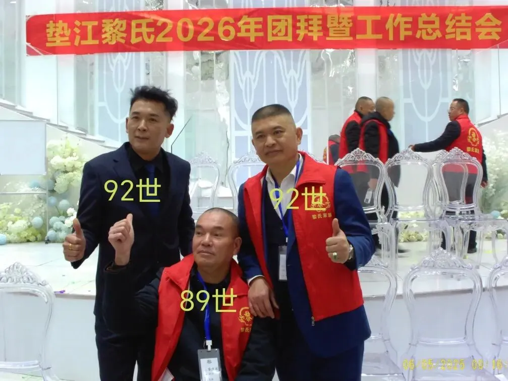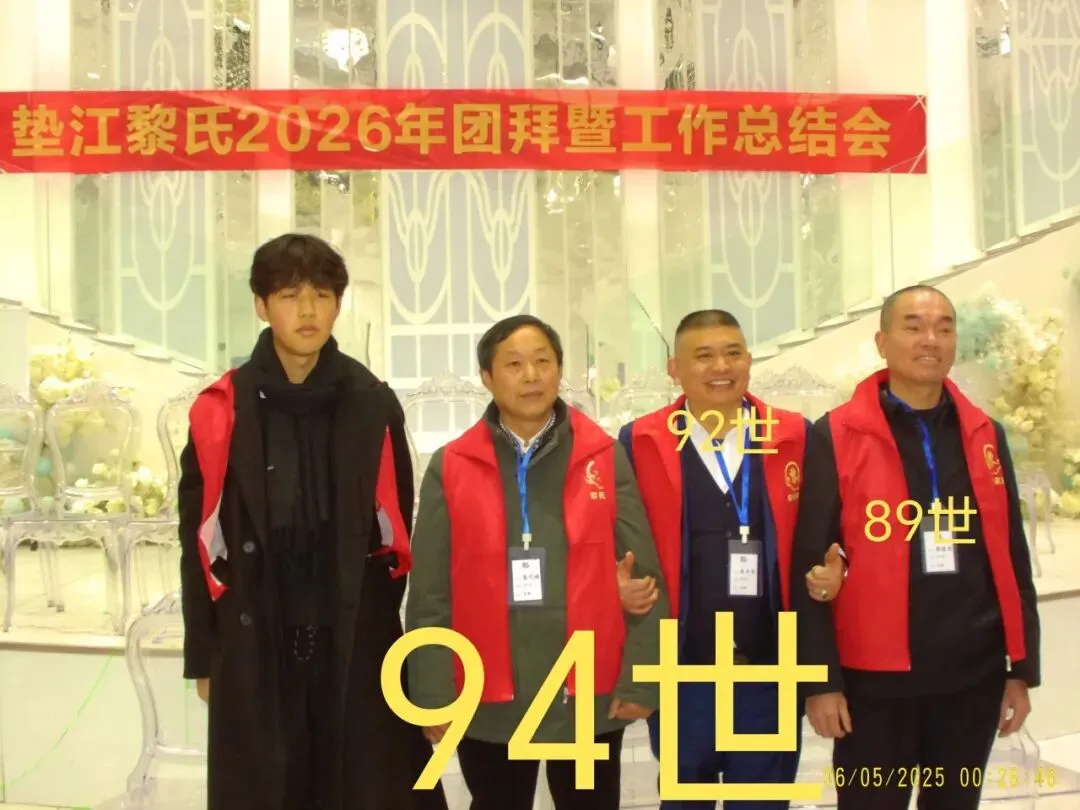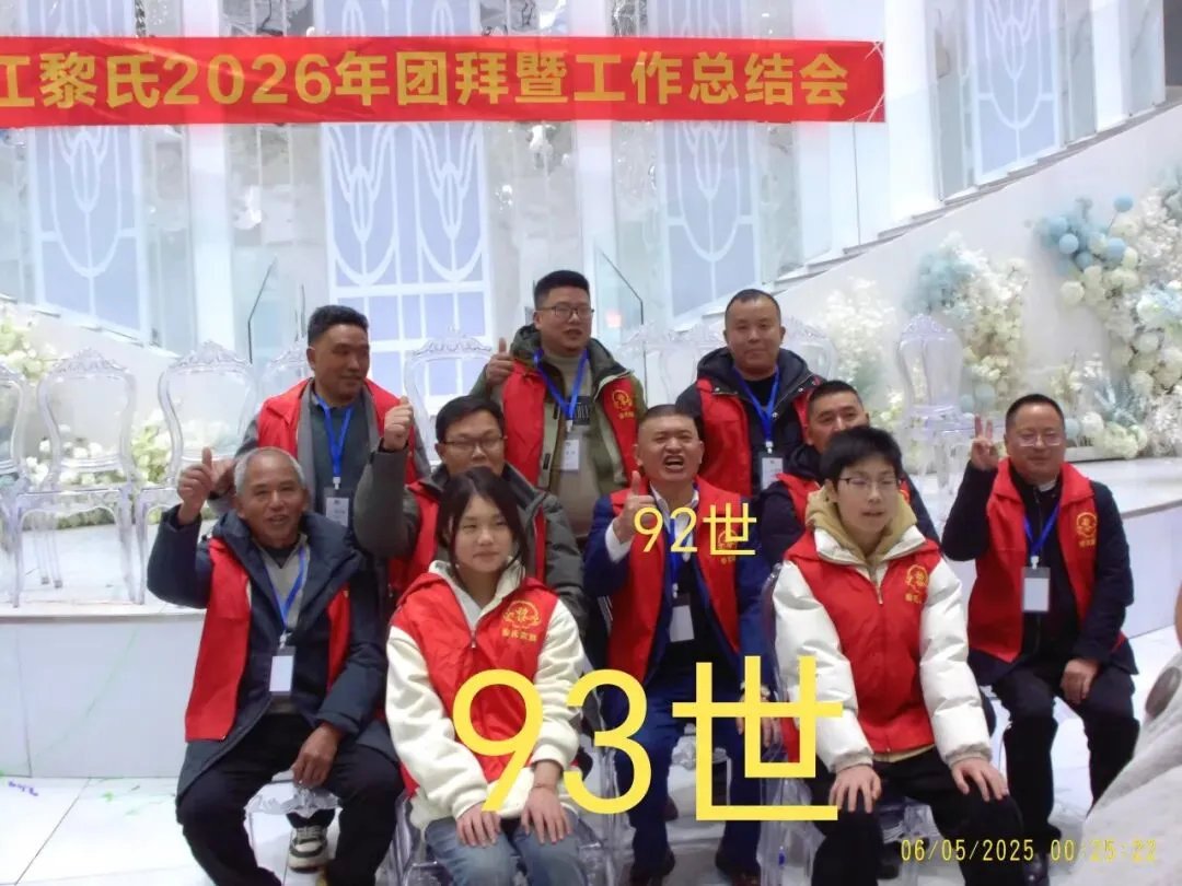 特别值得关注的是,本次团拜会实现了重庆垫江黎氏八郎公支系89、90、91、92、93、94世宗亲的同场相聚。这一难得场景不仅是黎氏家族繁荣昌盛的生动体现,更是黎氏文化代代相传的有力见证。从89世长者的家族智慧到94世年轻一代的朝气蓬勃,五代人齐聚一堂,共同勾勒出黎氏家族生生不息的生命画卷。