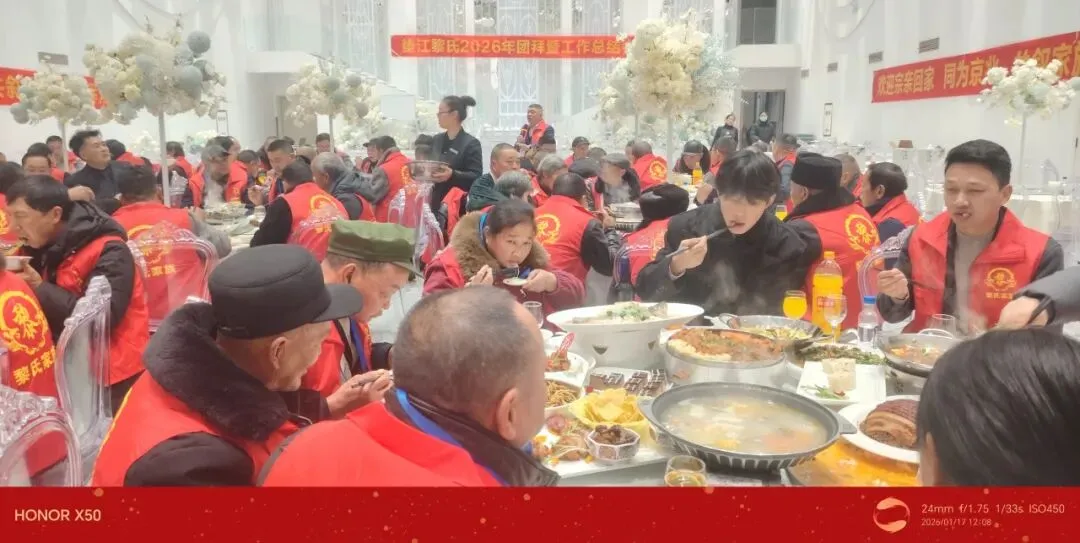 宴厅灯火,映照张张亲切笑颜;佳肴美酒,斟满浓浓血脉温情。此次宴叙是团拜会的温馨延续,也是家族凝聚力的生动体现。黎氏家族在重庆这片土地上繁衍生息,形成了各具特色的支系文化。重庆垫江的此次团拜会让我们深刻感受到,无论时代如何变迁,家族情怀始终是我们共同的精神纽带。重庆黎氏宗亲会期待与各区县黎氏宗亲组织携手并进,让黎氏家族的血脉亲情在巴渝大地上绵延不绝,让黎氏文化在新时代绽放更加绚丽的光彩,共同书写重庆黎氏家族团结奋进的新篇章!