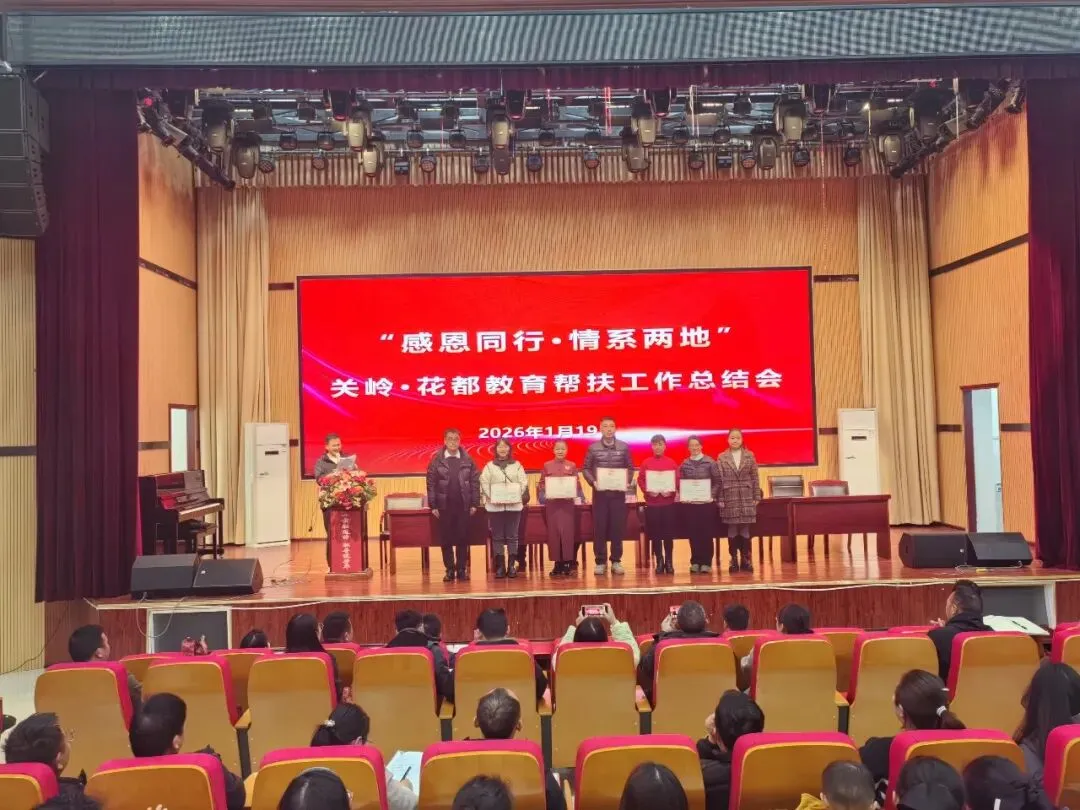 1月19日,关岭·花都教育人才“组团式”帮扶工作总结会在关岭自治县综合性高级中学召开。县教育局党组书记、局长尹涛,副局长项秋亚参加会议。并为支教满两年的申瑞琼、江燕群、王杏怡、吕佳、江文达五位教师颁发荣誉证书,以表彰她们在关岭教育帮扶工作中作出的贡献。