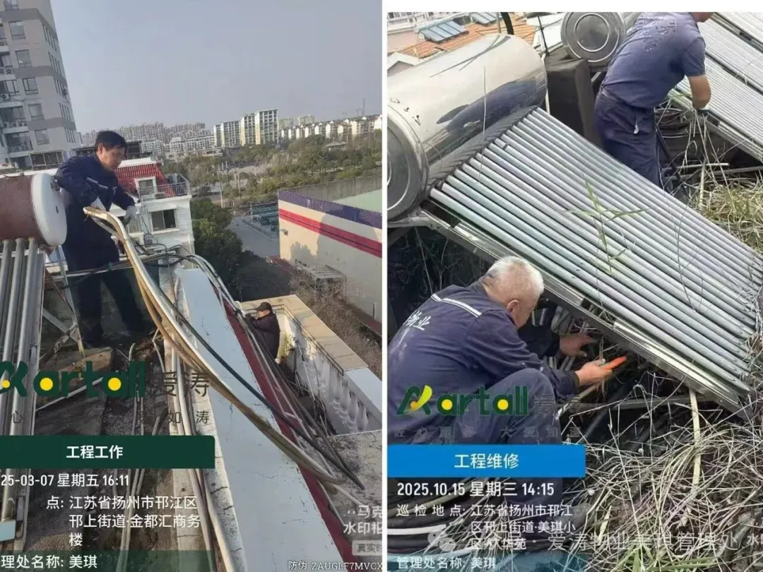 太阳能年久失修,漏水严重,工程师傅及时帮助业主维修太阳能和替业主拆除废弃太阳能我们提醒家人们,太阳能属于您自家专有部分和设施,请您一定要树立安全意识,高度重视自查工作,发现问题及时消除或修复。各个管理区域相应的标识更新,例如:安全警示、单元公示栏、温馨提示、公共设施标识、物业公告栏、草地温馨提示牌、增加凸面镜等。三、安保服务