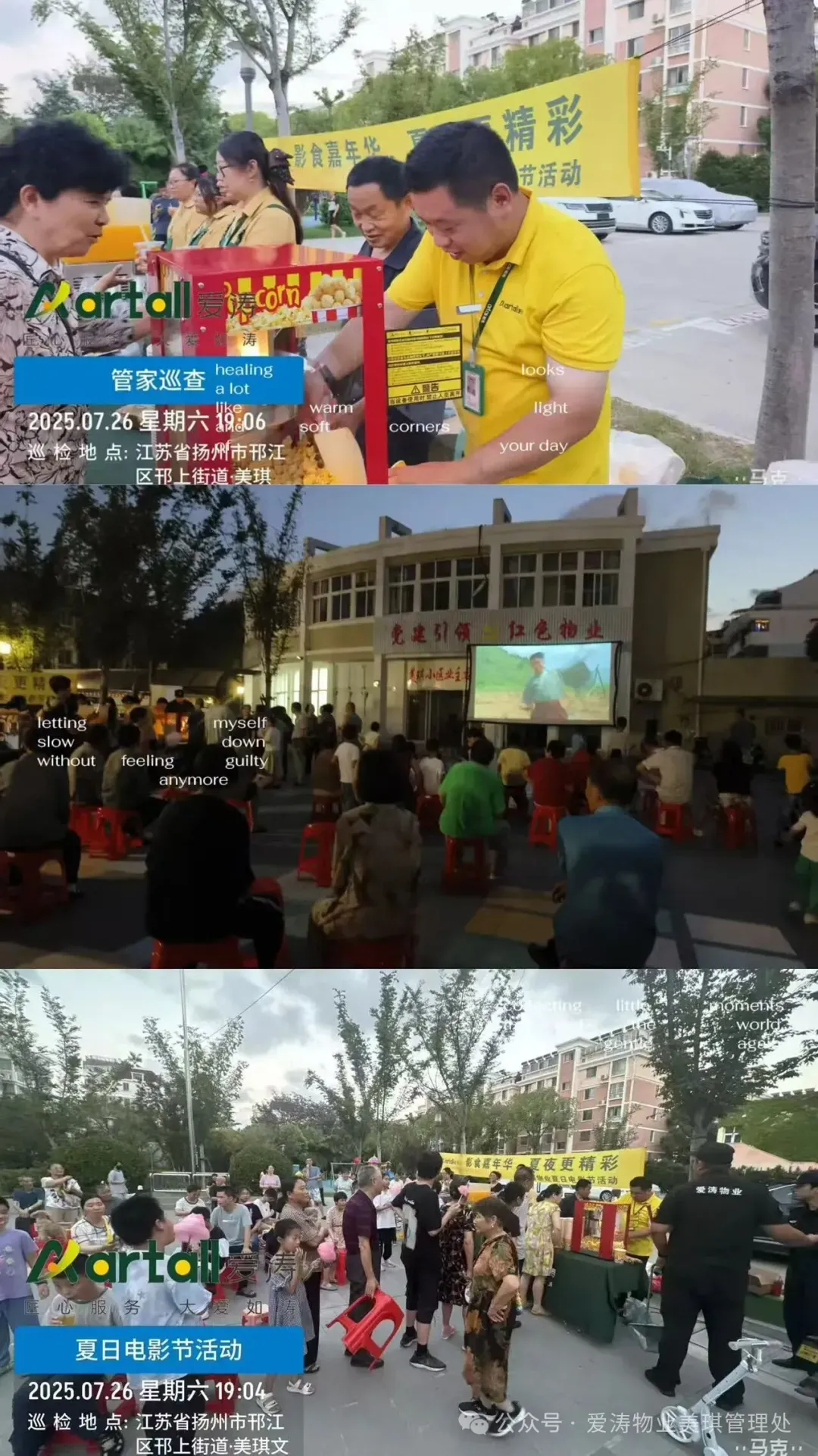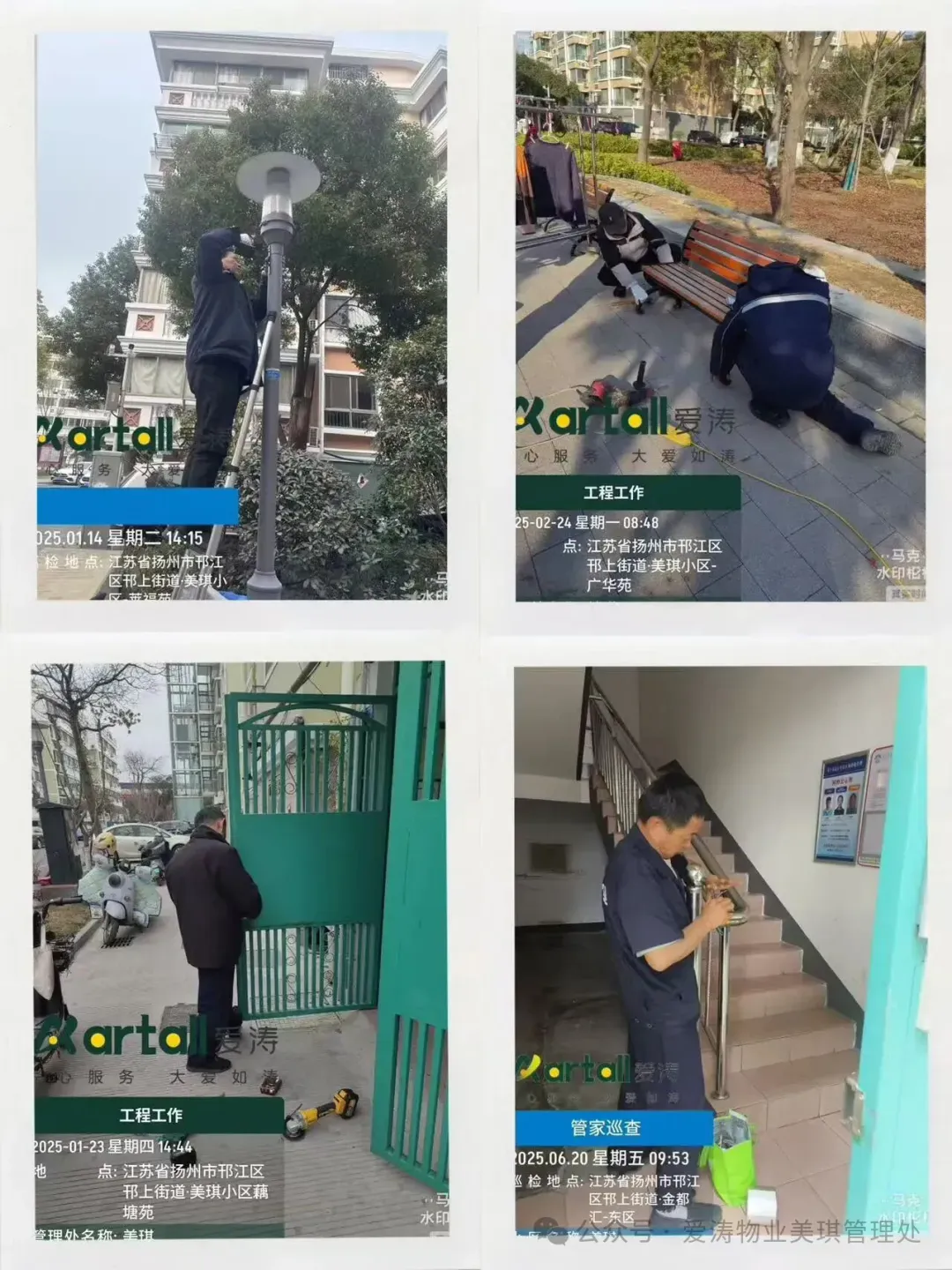 为丰富业主精神文化生活,营造邻里和睦的园区氛围,爱涛物业美琪管理处节日精心策划系列文化活动,从热闹的春节送对联、元宵送花灯,到活力满满的夏日泡泡秀、好看的电影节、教师节活动等等,在到便民义诊等活动,让业主们在互动中拉近距离,于欢笑中感受到物业的温情。 2025年,爱涛物业美琪管理处累计受理业主报修等各类事项2236起,其中家中故障维修1263起、公共设施维护973起、停车位协调260余起、装修巡检46起、管道养护200余起、邻里矛盾调解120起、监控调取267余起。