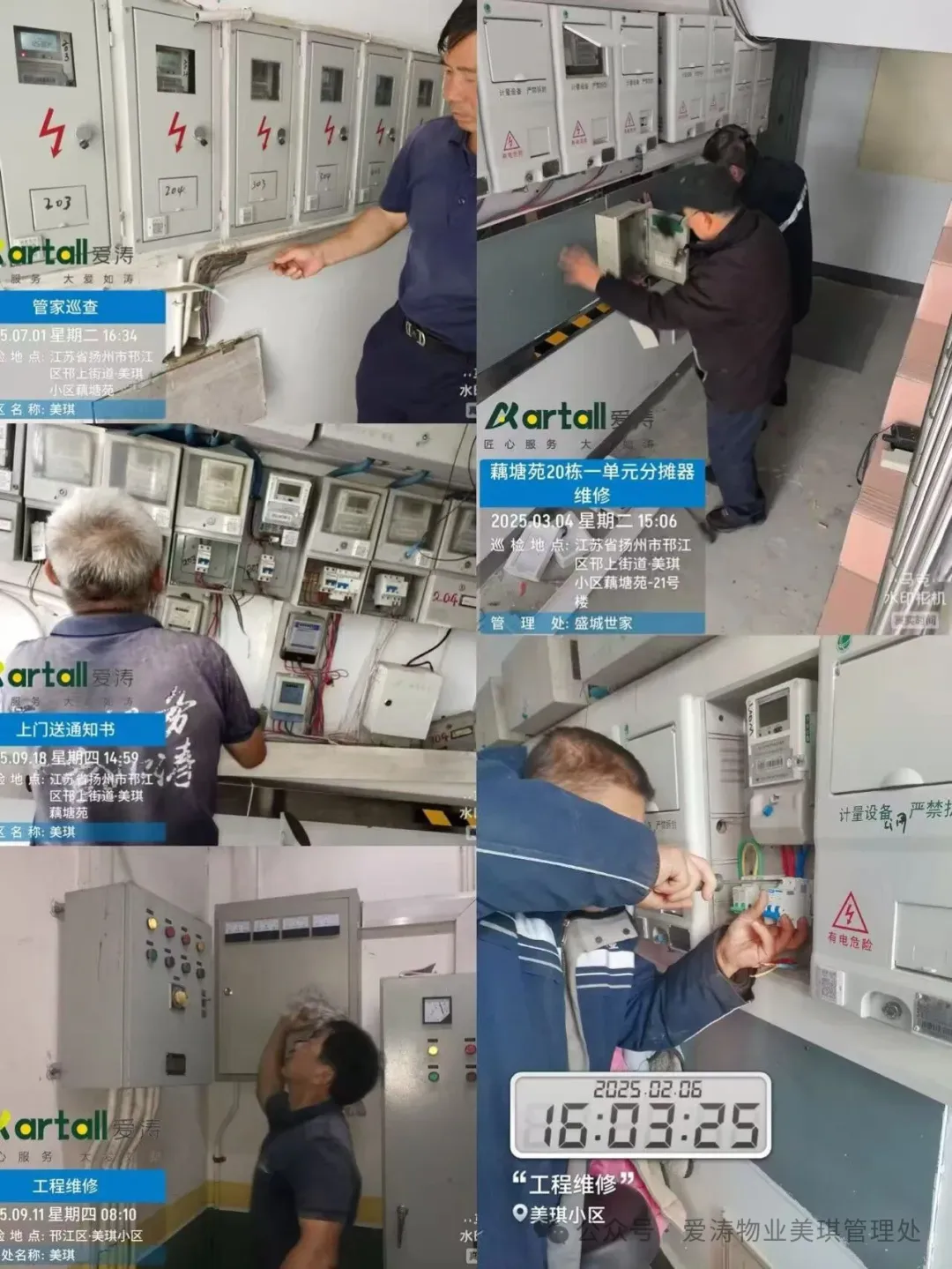 工程部以专业严谨的标准,全力保障小区设施设备的稳定运转。他们把每一处细节维护落到实处,切实提升设施完好率,将故障风险降至最低。