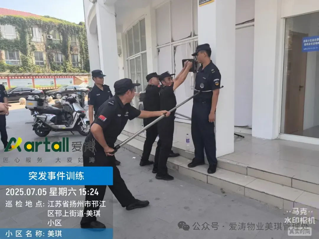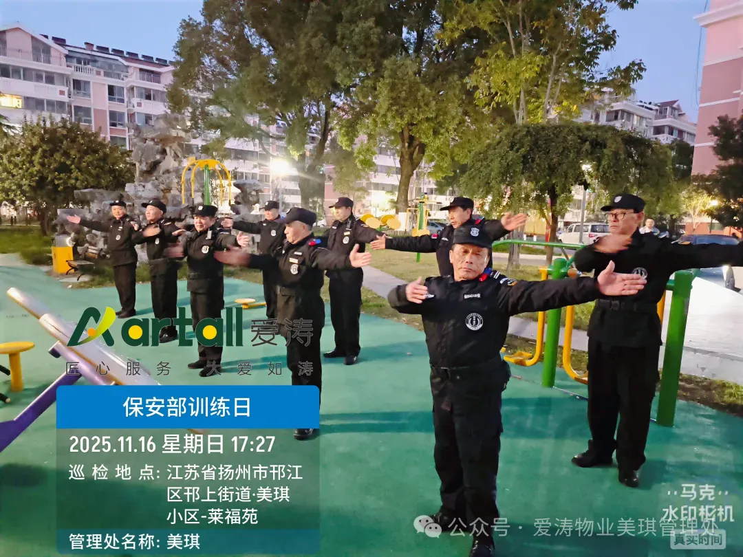 保安团队始终坚守岗位,24小时轮班值守,严格落实门禁核查、园区巡逻、车辆占位处理、飞线充电等工作,用脚步丈量园区每一寸土地,用责任筑牢安全防线,全力守护业主的居家安宁。定期举行消防、安全常识等教育,增强员工的消防安全意识,我们采取有计划多形式地对员工进行消防安全的宣传、教育、培训。保安团队始终把业主的需求放在首位,用点滴行动诠释责任与担当,为构建平安和谐的小区保驾护航。爱涛物业以匠心守初心,以细节筑品质