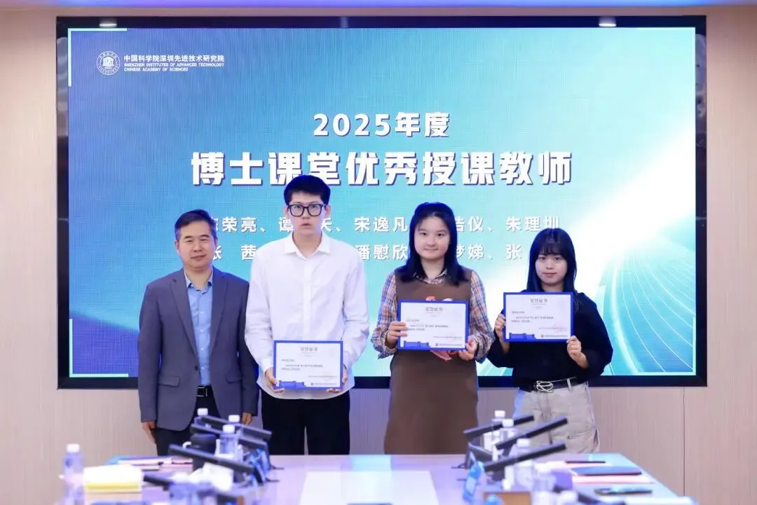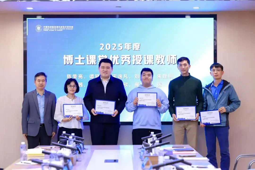 中科先进院实验学校副书记陈雄辉为中科先进院实验学校“博士课堂优秀授课教师”代表颁发证书(由左至右):刘浩仪、谭骁天、朱理圳、宋逸凡、陈荣亮(图1)杨明选、郝梦娣、潘慰欣(图2)。