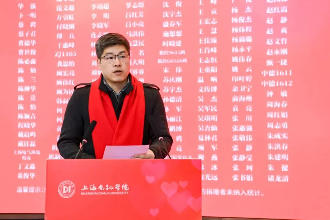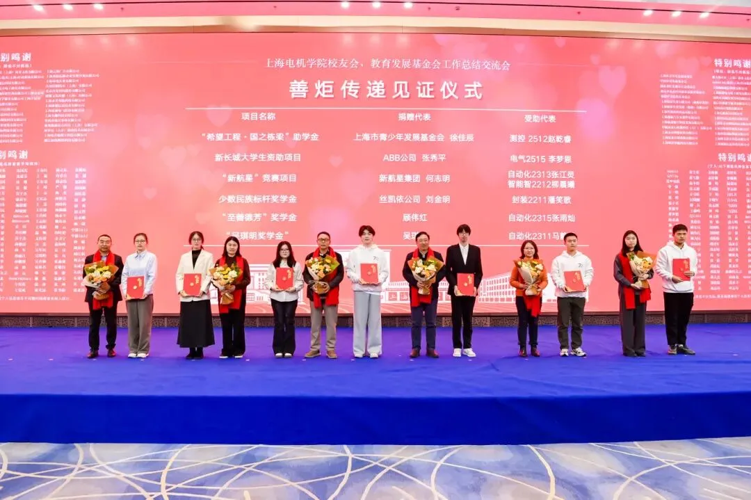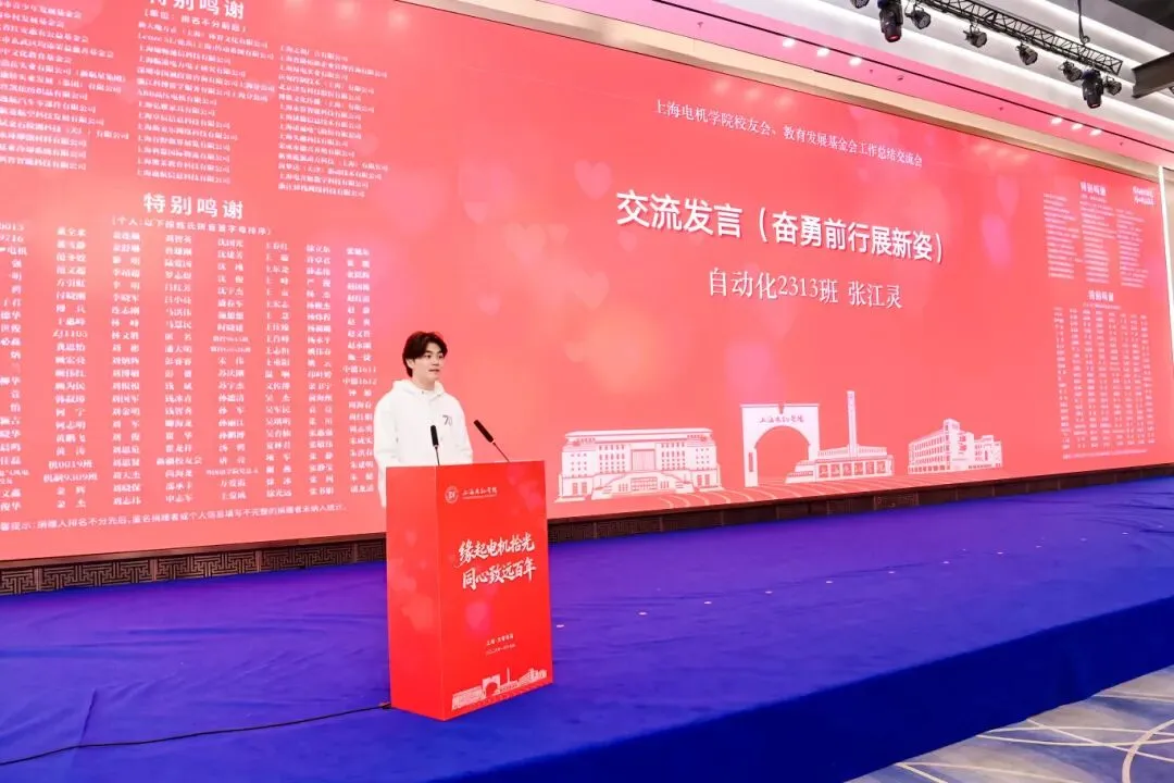 受助学生代表自动化2313班张江灵感恩学校与校友、社会各界的关爱,表示将奋勇前行、不负期望。
