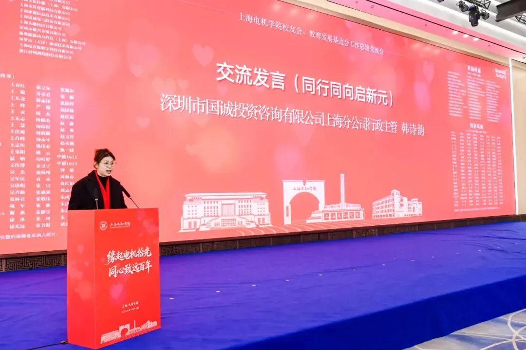 深圳市国诚投资咨询有限公司上海分公司行政主管韩诗韵代表捐赠单位表达了持续支持学校发展的意愿。