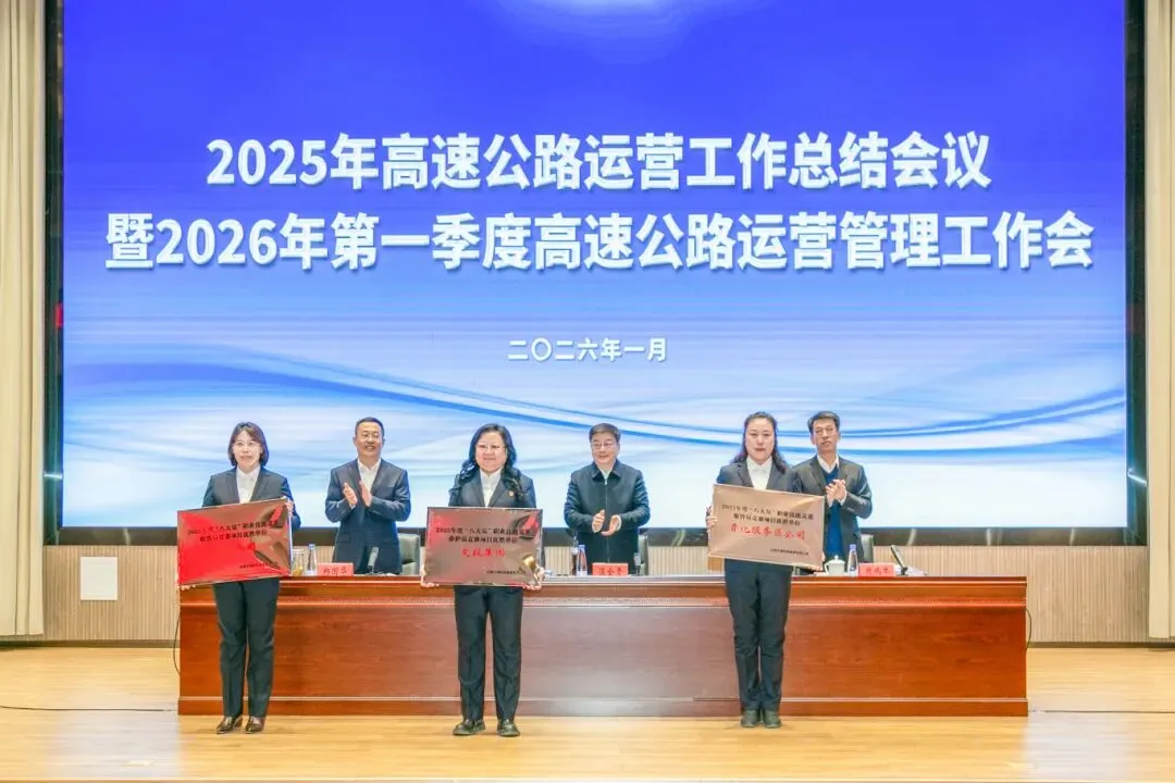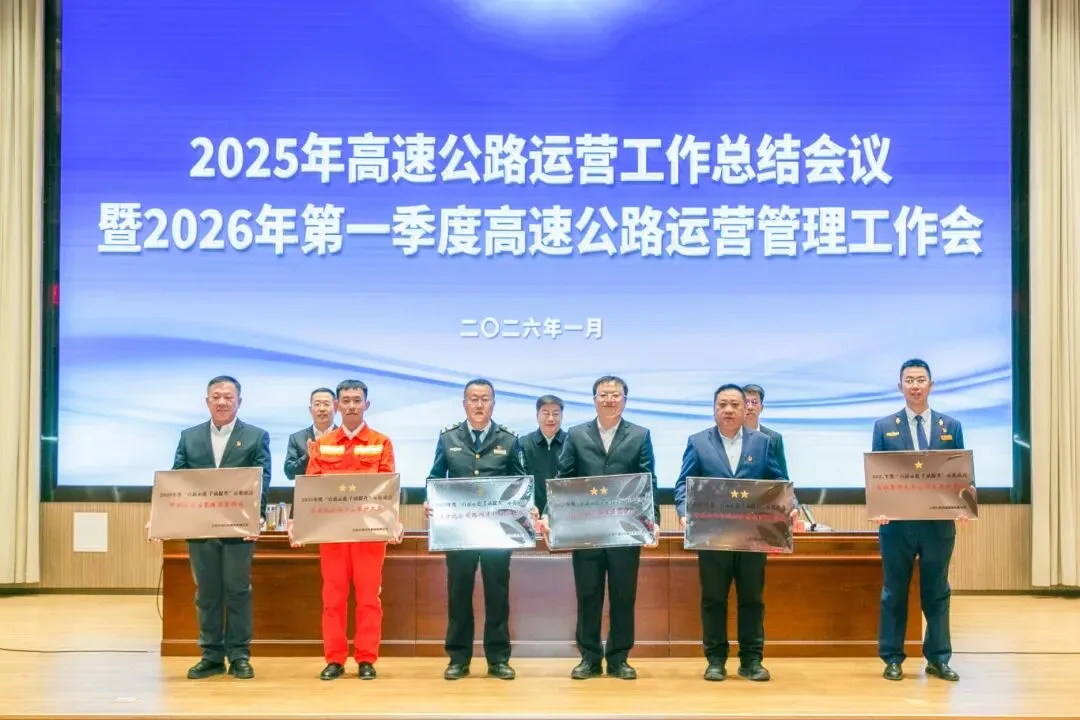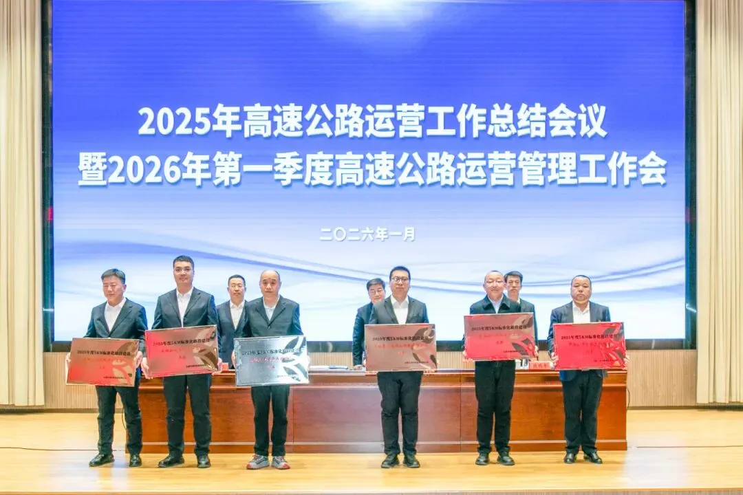 会议表彰了2025年度高速公路“百站示范、千站提升”创优活动示范站点、服务区“三优六化”劳动竞赛优胜单位及先进个人、“八大员”职业技能竞赛项目优胜单位及先进个人,并为高速公路运营管理"揭榜挂帅"活动A类项目、5km标准化路段建设A类站点、文明服务先进单位授牌。服务区“三优六化”劳动竞赛岗位能手任莹、“八大员”职业技能竞赛“三十佳养护员”曹富臣代表先进个人作经验交流。运营管理部通报了集团公司2025年运营管理主要指标及重点工作完成情况。大同公司、高速集团、路桥集团作表态发言。总部相关部室、中心负责人,相关成员单位主要负责人参加。