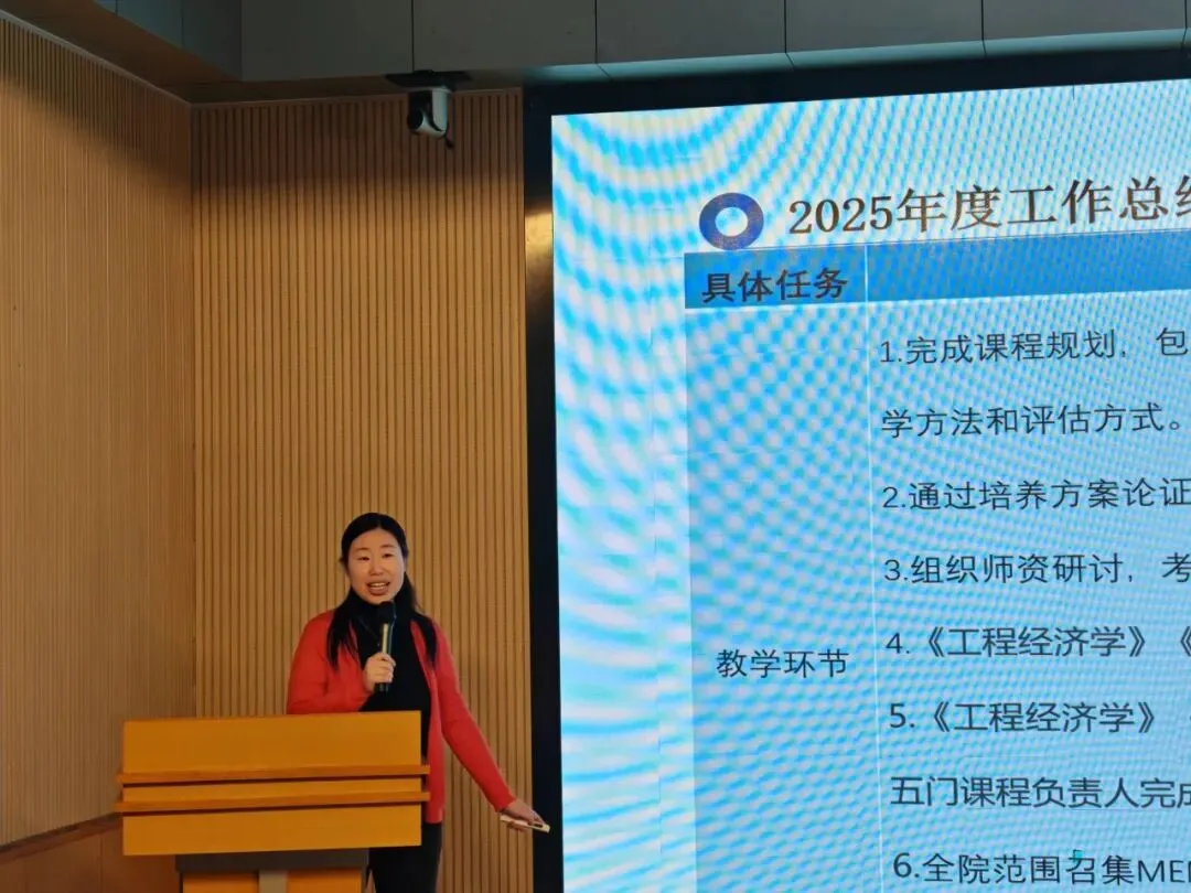 近日,为全面总结2025年度工作成效,系统谋划“十五五”特别是2026年发展蓝图,经济管理学院举行2025年度工作总结大会暨系(所、中心)负责人述职评议会。学院领导班子全体成员,各系(所、中心)负责人及全院教职工齐聚一堂,共话发展。大会由党委书记赵钊主持。会上,制造管理与运营系、建设管理与运维系、数据科学与决策管理系、组织与人力资源管理系、营销与创新管理系、会计与财务管理系、金融工程与管理系、区域经济发展研究所、MBA教育中心、MPAcc教育中心、MEM教育中心、MF教育中心、案例中心、实践中心等14位系(所、中心)负责人依次进行现场述职。各位负责人紧扣立德树人根本任务,结合本部门年度目标任务,以详实的数据、丰富的案例、生动的语言,全面汇报了2025年在党建引领、人才培养、教育教学、科学研究、社会服务、师资建设、内部管理等方面的主要举措、标志性成果与特色亮点,并深刻剖析了存在的问题与不足,提出了下一年度的改进思路与发展规划。述职过程精彩纷呈,充分展现了过去一年学院各基层单位务实进取、开拓创新的精神风貌和扎实丰硕的工作实绩。在认真听取述职汇报后,学院领导班子成员分别结合各自分管领域,对述职情况进行点评,并就假期和开学前准备工作进行部署。副院长刘广平肯定了各系(所)在学位点评估、专业建设、课程建设等方面取得的成绩,并对2026届本科毕业设计(论文)、2026年博士招生筹备、教材出版以及2026年春季学期硕博士学位论文评阅、答辩和学位授予等工作进行部署。副院长马苓对各系(所、中心)2025年的付出和贡献表示感谢,指出未来要进一步加强有组织科研,将人才培养、科学研究和服务社会工作贯通,将学科专业建设、学生成才与教师职业发展联动,促进专业、项目、学科和学院的一体化建设,为“十五五”规划落地开好局。 党委副书记、副院长张秀军简要回顾了学院在学生工作方面取得的成绩,肯定了各系(所)在促进学生成长、关注就业质量方面所做的工作和取得的成果,提出要进一步完善“招生-培养-就业”贯通机制,全力促进学生全面成长成才和高质量充分就业。最后,赵钊代表学院对全体教职工的辛勤工作表示感谢,对一年来各方面工作取得的成绩表示祝贺。赵钊要求,在全面总结2025年工作成绩的同时,干部、教师还要注重工作经验的总结,正视发展中存在的问题和短板。各系(所、中心)不仅要低头看路、还得抬头看天,充分把老师们动员和组织起来,“人人有事干”“事事有人干”,以“功成必定有我”的担当扛起学院发展的一片天,以“功成不必在我”的境界跑好发展的接力赛。本次述职大会既是一次成果展示和工作交流,更是一次思想碰撞和战略动员,达到了预期效果。赵钊强调,全体教职工要绷紧“安全”和“纪律”两根弦,放假不放松,度过一个平安欢乐祥和的假期。