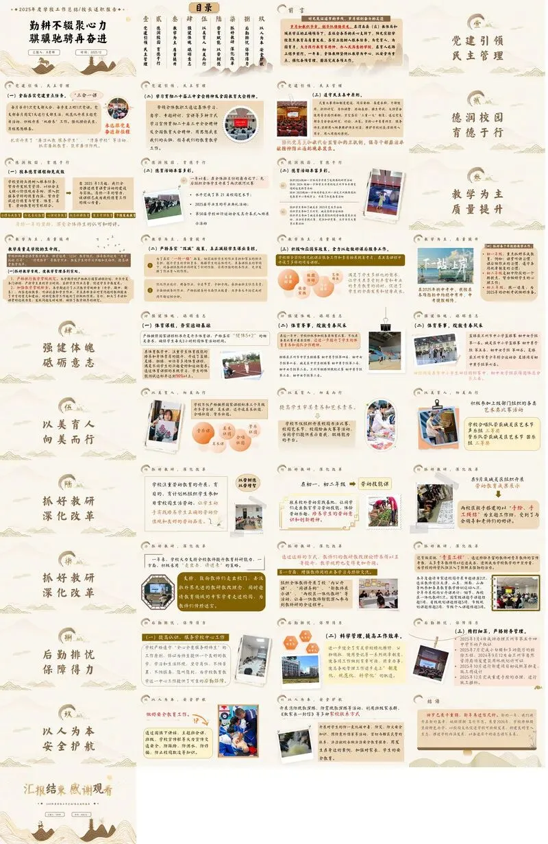 >2025学校年度工作总结汇报【校长述职】:勤耕不辍聚心力,骐骥驰骋再奋进word版+PPT