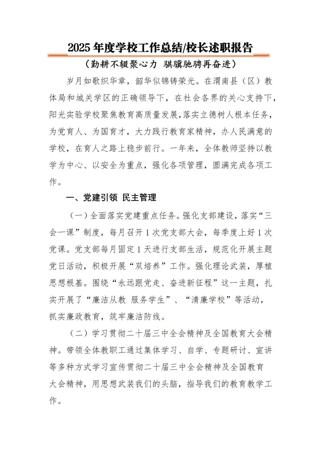 2025年度学校工作总结汇报及2026年工作计划:抓党建、育新人、提质量,各项工作有成效