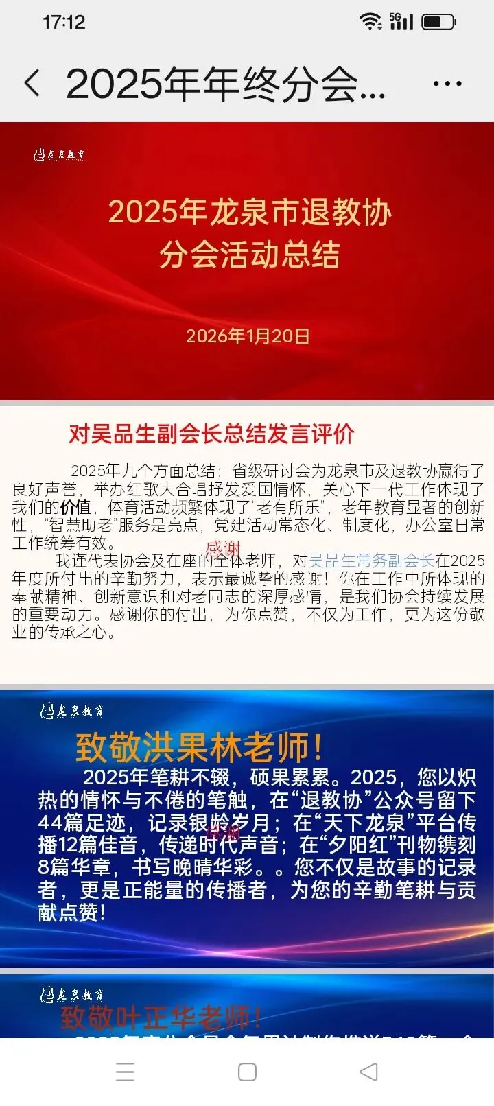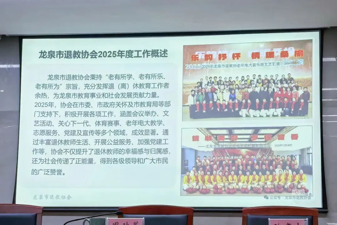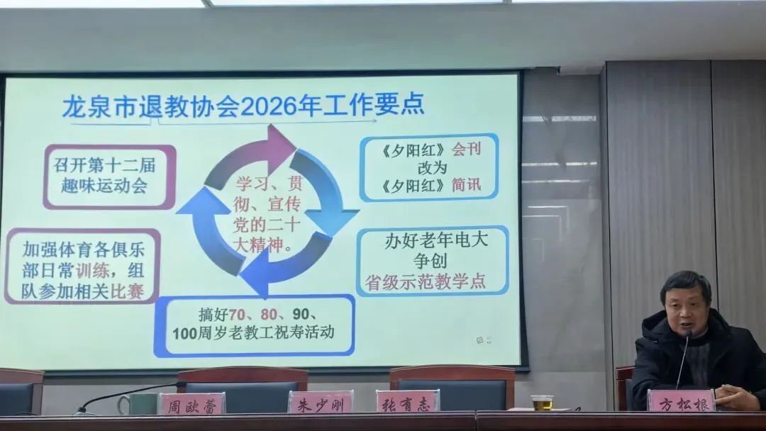 此次会议既是一次回顾过去、肯定成绩的总结会,也是一次展望未来、凝聚共识的部署会,为龙泉市退教协会2026年工作开好局、起好步奠定了坚实基础。