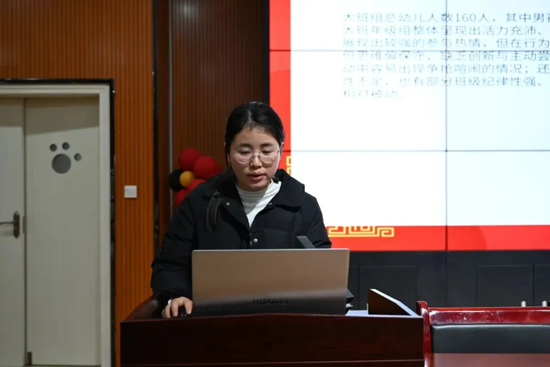 在年级组汇报环节,小班、中班及大班年级组代表依次围绕本年级整体工作情况进行了总结。总结综合了各班级实践经验,系统梳理了在教育教学、安全防护、家园共育等方面的具体工作。教学中突出游戏化与生活化,不断优化活动组织;安全工作中落实日常排查与主题教育,共筑安全防线;家园协作中通过多元途径增进理解,形成育人合力。也客观反思了在个别化支持与活动创新等方面的不足,并提出下一步改进措施,明确下学期将以年级组的团队力量共同推动各年龄段保教工作科学、均衡发展。