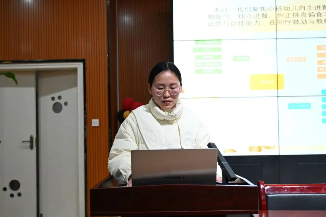 随后,后勤副园长曾洁作学期后勤保障工作总结。她以“服务幼儿、服务教学、服务教职工”为核心点,从筑牢校园安全防线、优化科学膳食管理、加强规范财物管理、美化育人环境、强化队伍专业能力等五大方面,系统回顾了一学期来为全园师幼提供的坚实保障与精细服务。在全力守护校园平安、促进幼儿健康成长、提升资源使用效益、营造优美教育环境的同时,也客观反思了在设施更新、管理精细化与服务创新等方面还有提升空间,并提出了深化安全责任、推进精细化管理、优化膳食服务、加强队伍建设等未来方向。