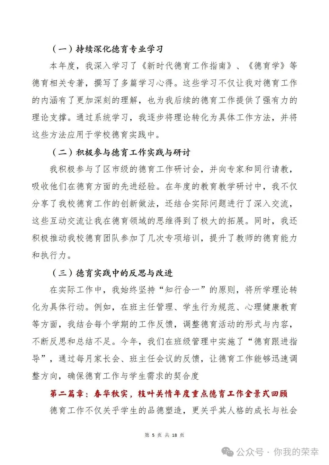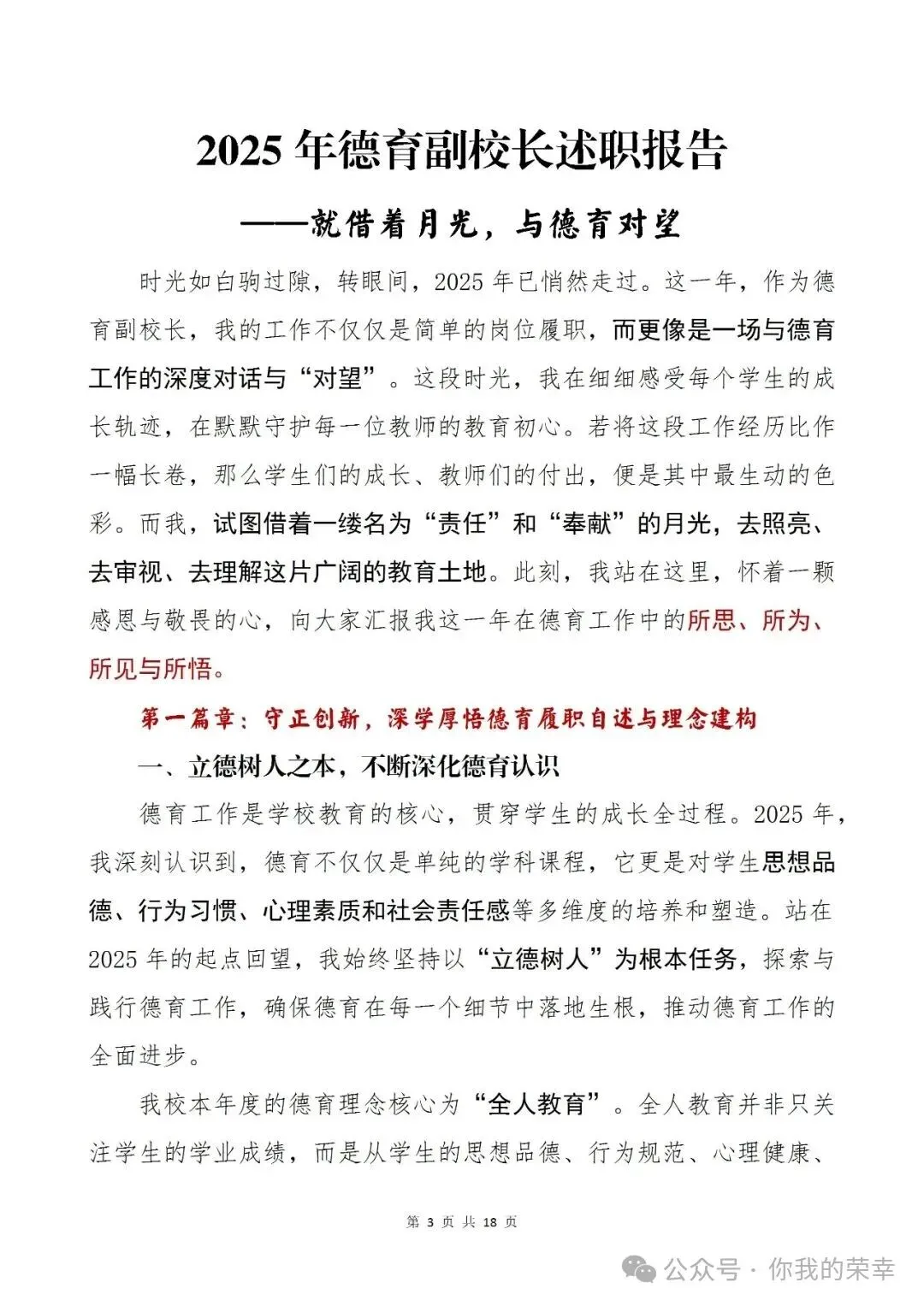 2025-2026第一学期德育副校长工作总结:就借着月光,和德育对望word版+PPT