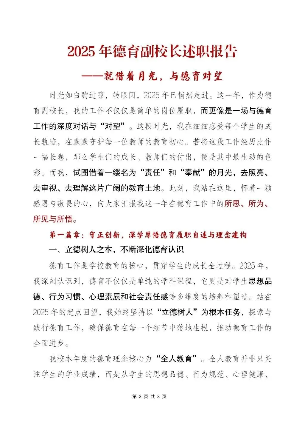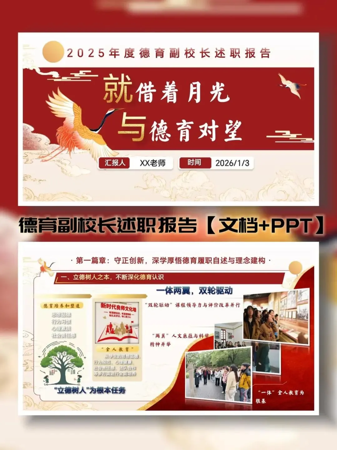 2025-2026第一学期德育副校长工作总结:就借着月光,和德育对望word版+PPT