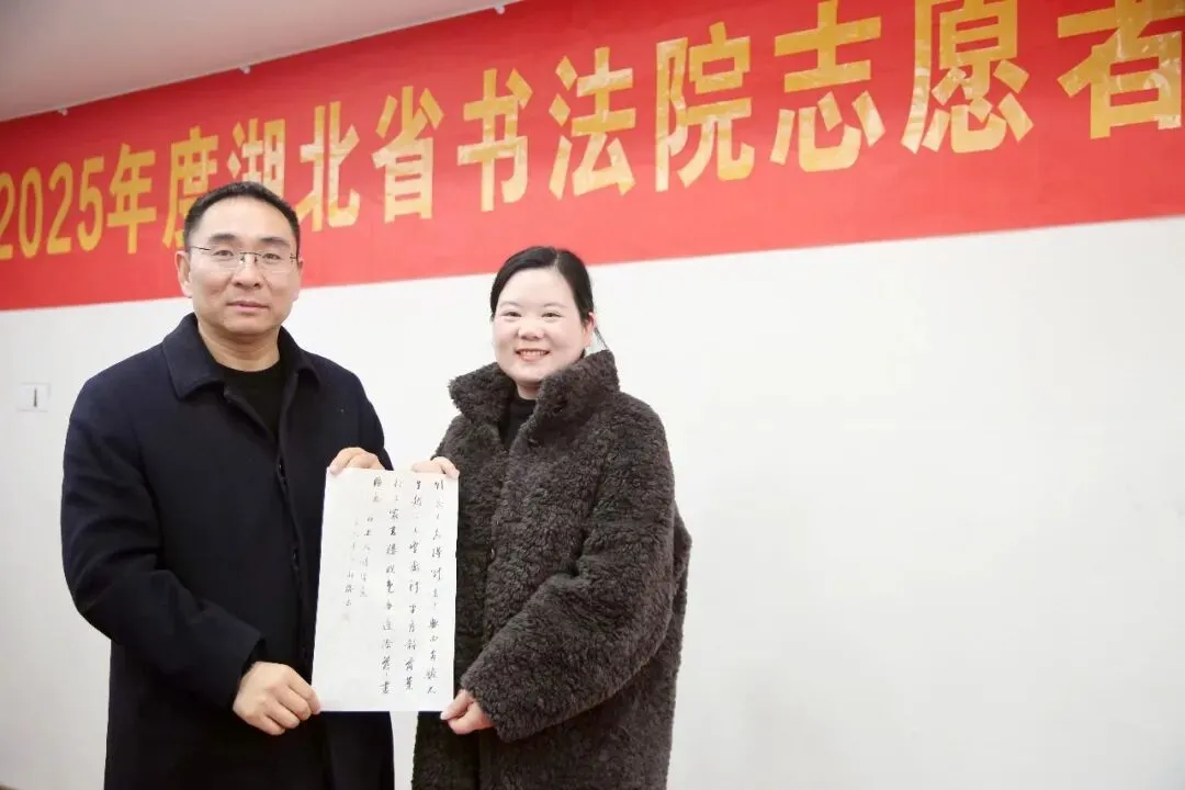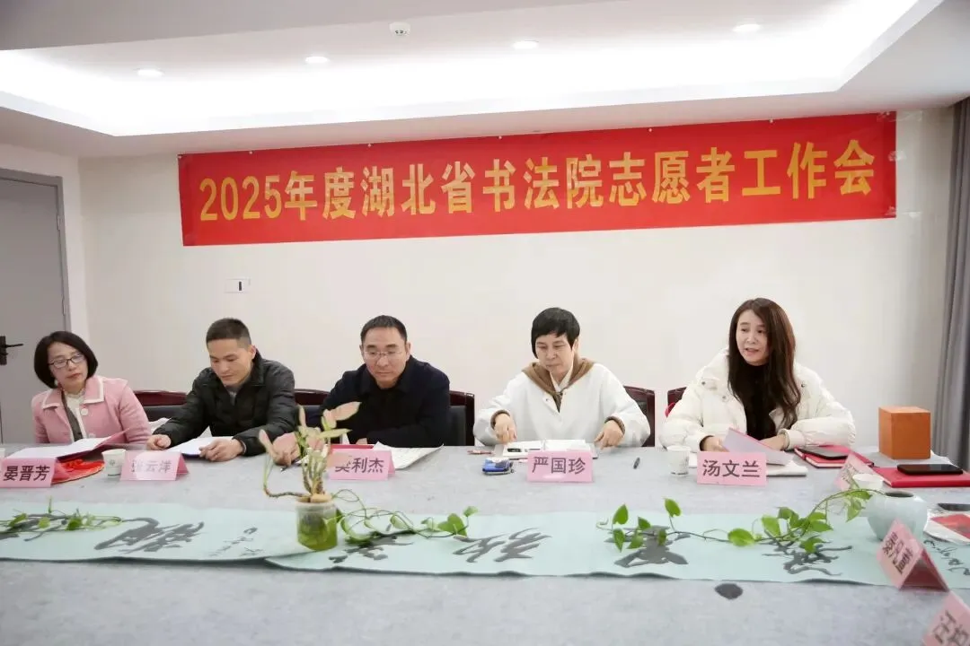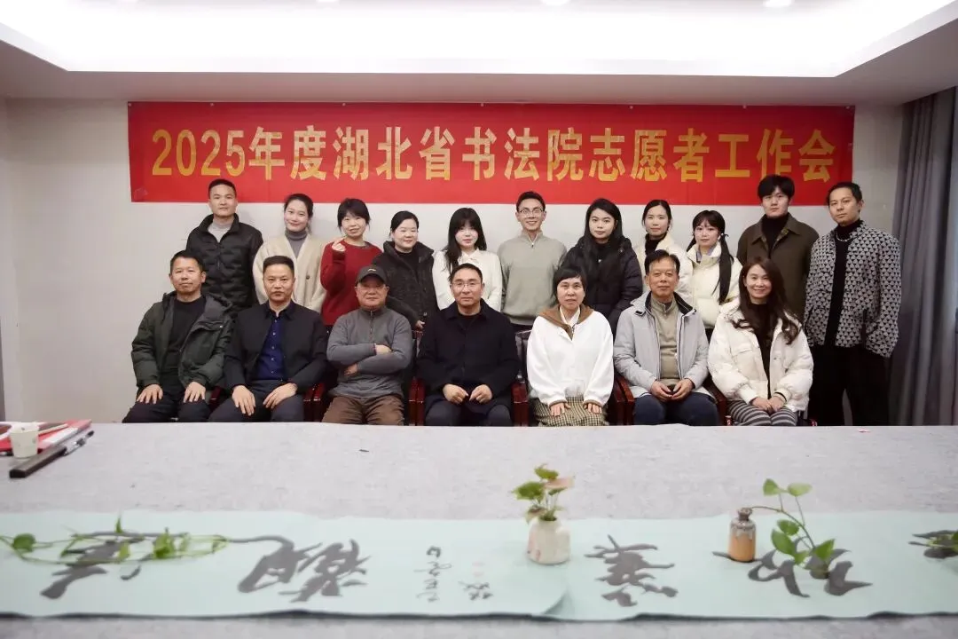 1月18日,湖北省书法院2025年度志愿服务工作总结会在武汉召开。湖北省书法院副院长樊利杰、楚简书法研究中心秘书长严国珍、办公室干部张云洋,志愿服务中心负责人汤文兰及16位志愿者代表齐聚一堂。会议由志愿者晏晋芳主持。