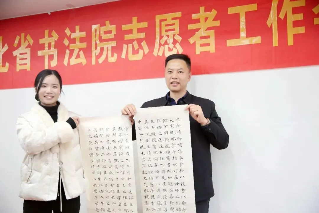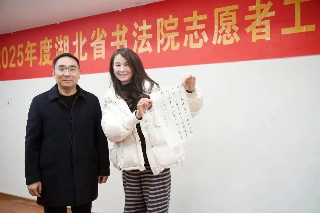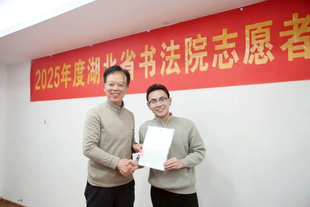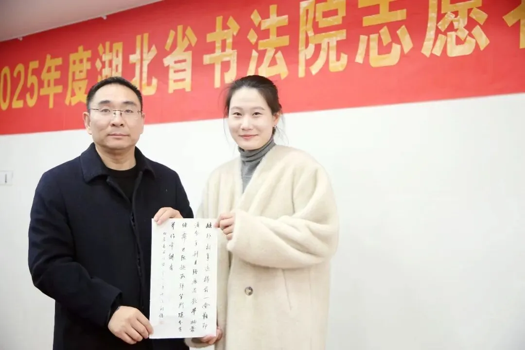会上决定,2026年湖北省书法院将设立“志愿日”,在志愿日,志愿者团队进行业务学习,参加艺术培训。组建后台编辑组、接待服务组及志愿服务考勤与资料整理组等,以精细化分工与规范化运作,进一步提升服务质量与团队凝聚力。同时决定将“湖北省志愿者服务团队”正式更名为“湖北省书法院志愿服务中心”。严国珍、张云洋也先后分享了心得体会,并对新一年的志愿服务工作表达了期许。樊利杰表示,回首这一年,志愿者团队成为了湖北省书法院一道亮丽的风景线,大家辛勤耕耘与默默奉献,已然成为书法院工作中不可或缺的特色与亮点,充分彰显出志愿者队伍建设的重大意义和价值。一年来,志愿者不图回报、不计得失,令人感动。他同时表示,志愿服务不是日常工作,志愿者一定要理清与安排好志愿服务与本职工作、家庭生活等的关系,如果有时间冲突,请以个人的工作和生活为重。只有在轻松、自在、快乐的情况下从事志愿服务工作,才能长久。接下来书法院将继续探索合作模式,拓宽志愿服务渠道,让更多热爱书法艺术、热心公益事业的朋友加入到我们的队伍中来,汇聚起更强大的文化力量。让古老的书法艺术在新时代焕发出新的生机与活力。总结会氛围温馨融洽,志愿者们踊跃交流服务感想。会议特别设置互赠礼物、书写寄语环节,字里行间满是对团队的期许与对书法院的祝福。在新的一年里,湖北省书法院与志愿者心心相连,携手共进,共赴美好未来!统筹:张云洋 汤文兰