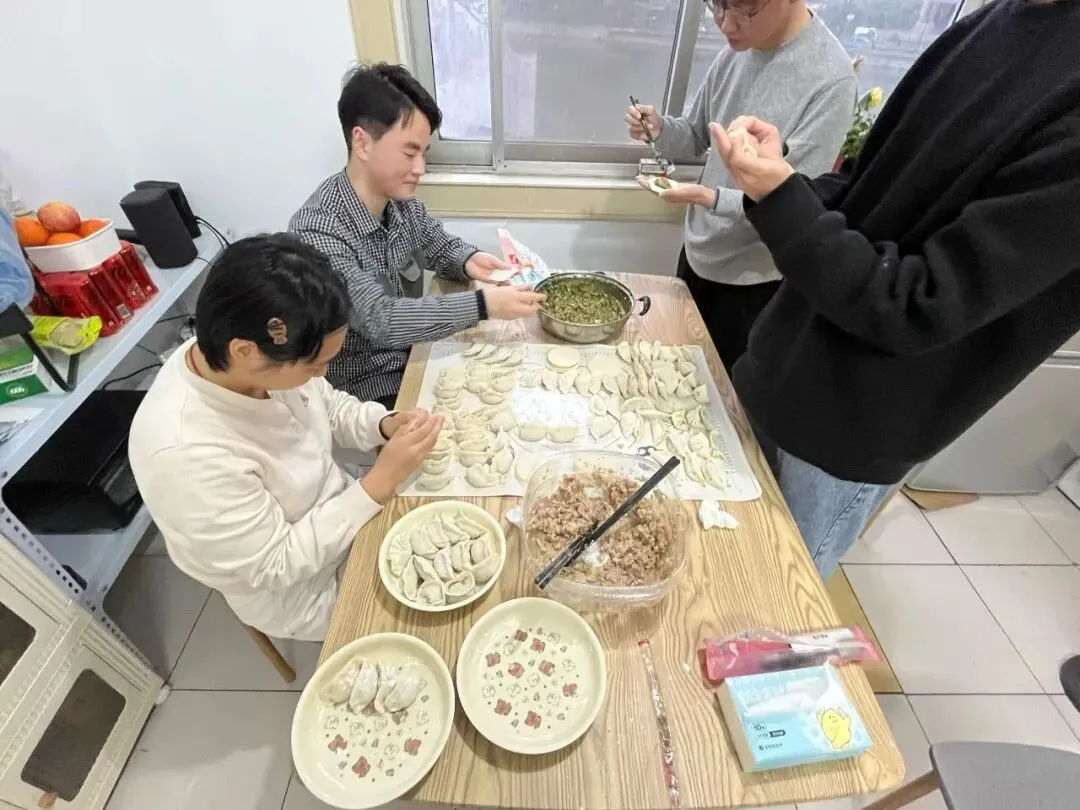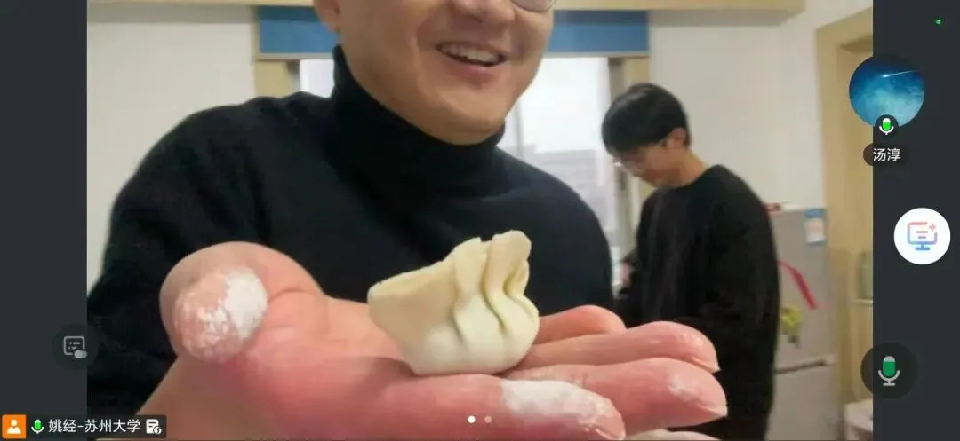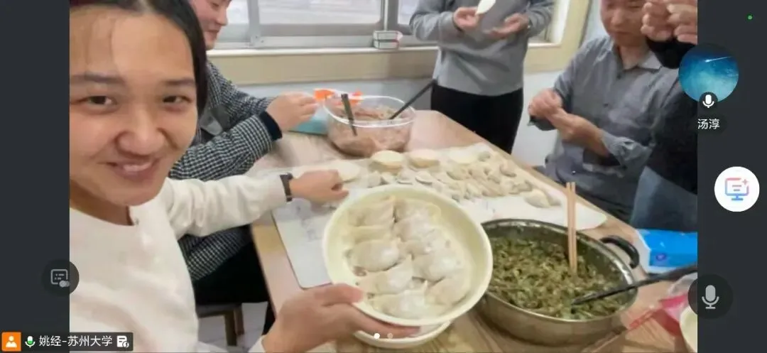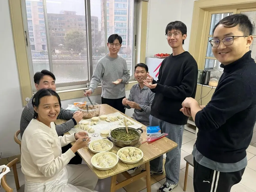 除了扎实的科研工作,团队亦注重学术氛围与师生情谊的营造。2026年1月19日,团队举办温馨的年终聚餐,团队老师与同学们齐聚一堂,携手备菜、包饺子、共享美食。大家一边品尝着亲手制作的韭菜猪肉与香菇莲藕两种馅料的饺子,一边畅谈交流,线上参与老师也一同分享了这份温暖与喜悦。