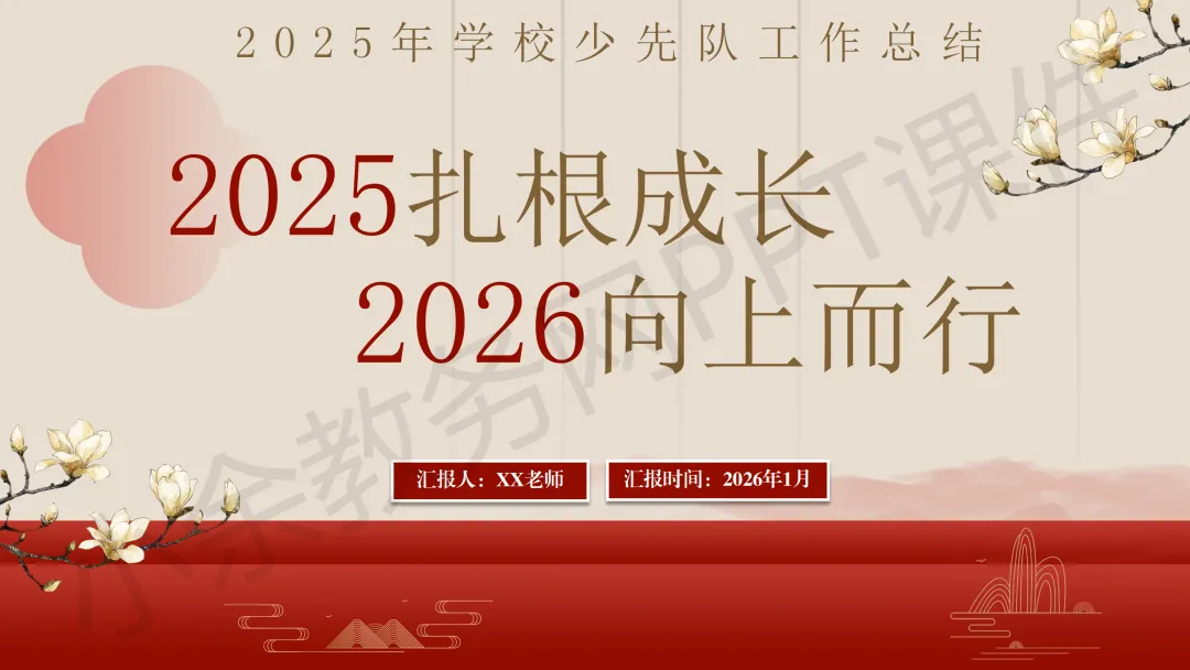 关于《2025 扎根成长,2026 向上而行》为主题的「学校少先队工作总结」PPT 课件就介绍到这里了,希望本次分享的资料对您有用哈^_^^_^