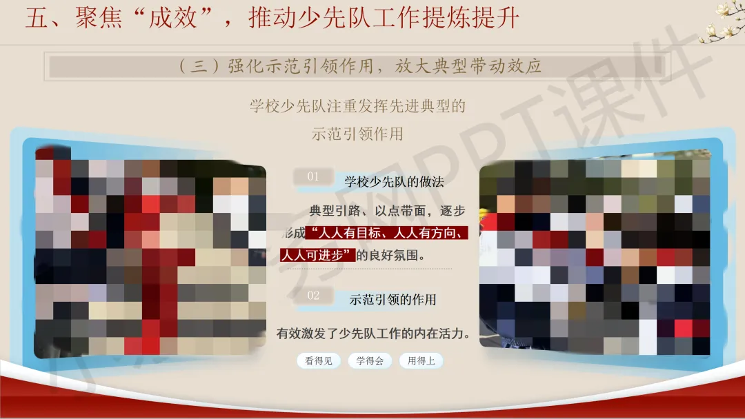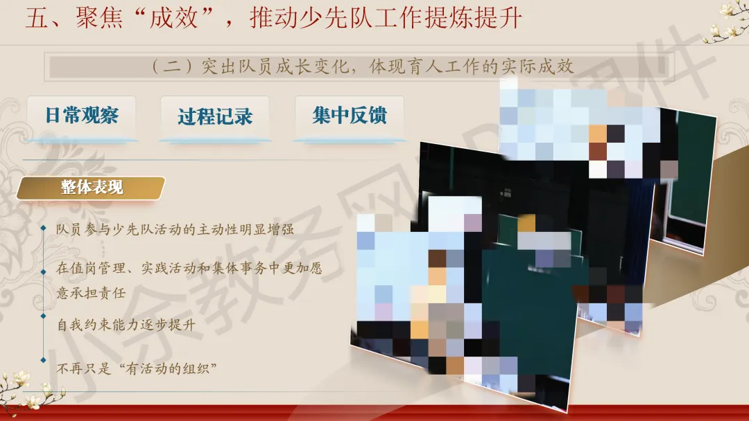 最后一部分内容:《聚焦“成效”,推动少先队工作提炼提升》这部分内容就是所谓的 KPI 吧,做了这么多辛苦的工作,我们有没有达到最初制定的目标。