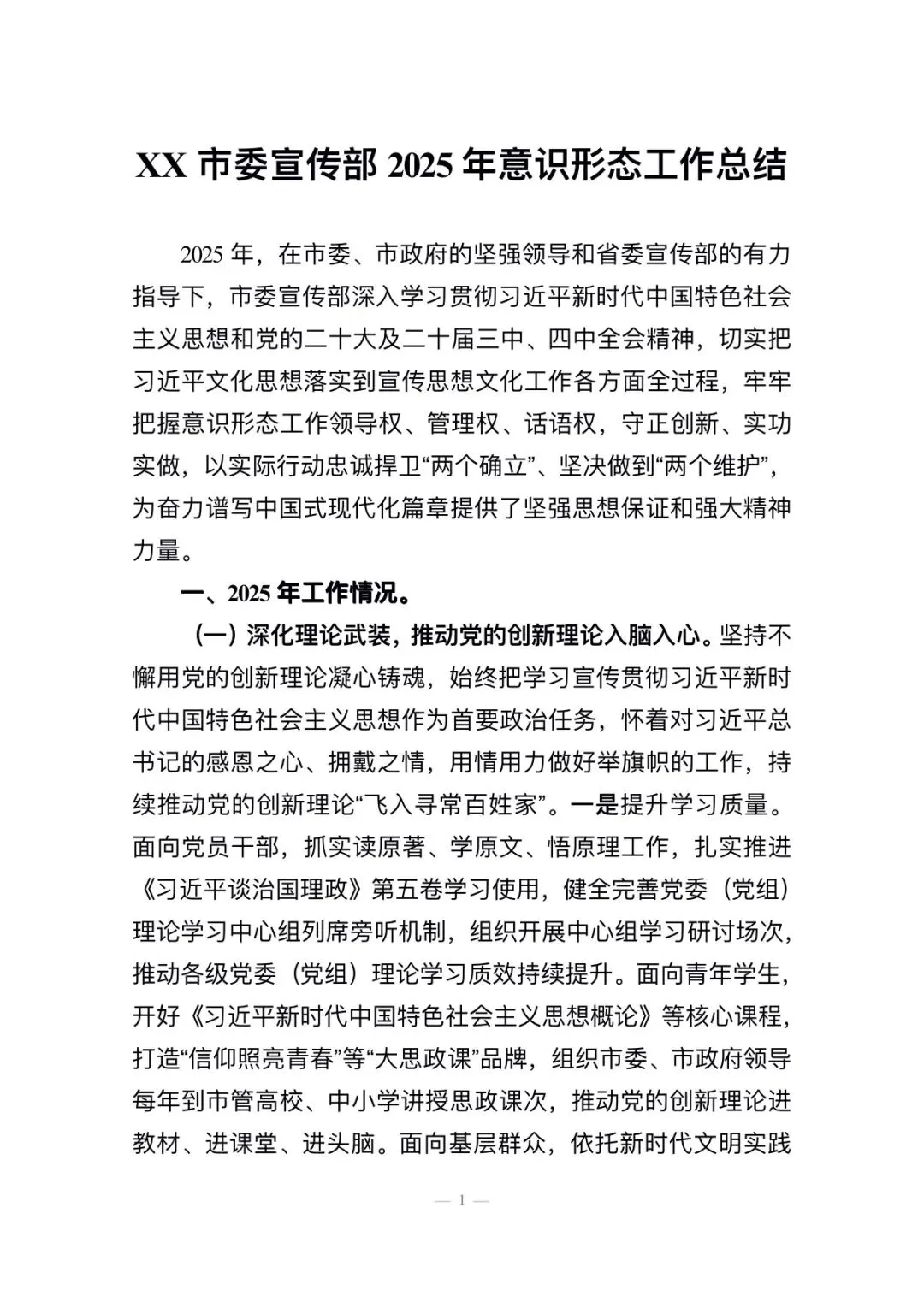>XX市委宣传部2025年意识形态工作总结