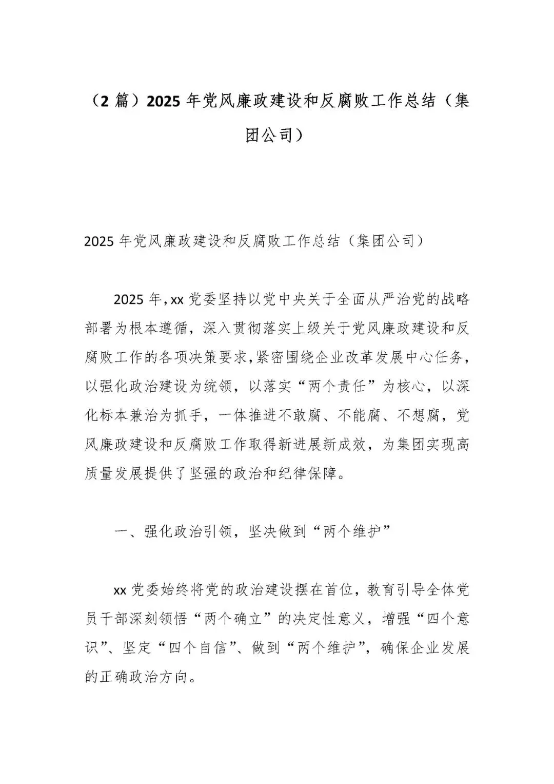 >(2篇)2025年党风廉政建设和反腐败工作总结