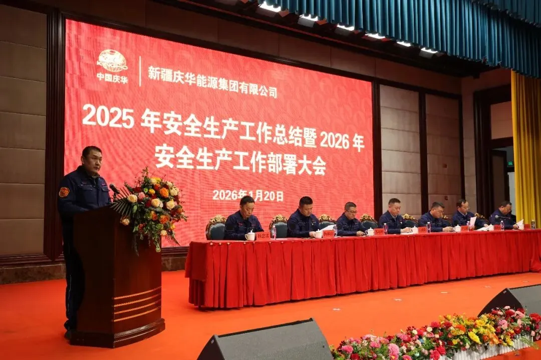 1月20日,新疆庆华能源集团召开2025年度安全生产工作总结暨2026年安全生产工作部署会议。会议全面总结过往一年安全工作成效,深刻剖析存在的问题与不足,系统部署新年度安全生产重点任务。伊宁县应急管理局相关人员应邀出席会议,公司安委会全体成员,各单位、部门代表及外包单位负责人等200余人参加会议。公司安委会副主任、安全总监郝树甫传达了企业安全生产1号文件精神,明确了年度安全工作总体要求、重点任务和实施路径,为全年安全工作划定清晰路线。能源开发有限公司、安委会办公室、甲烷化车间、外包单位代表等,结合各自工作实际,依次分享了安全生产管理的宝贵经验与实践做法。