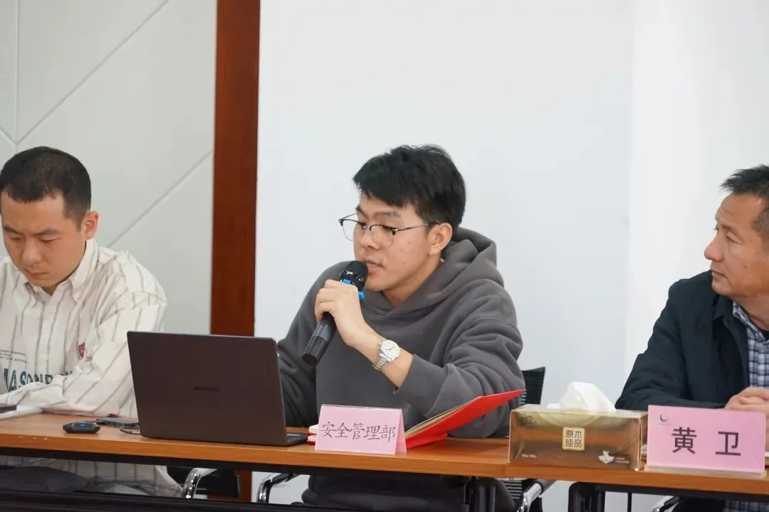 首先,安全管理部副经理姚佳俊代表安全管理部做2025年度安全生产工作总结报告。报告通过详实的数据、典型的案例,系统回顾了过去一年公司在健全安全责任体系、深化隐患排查治理、强化安全教育培训等方面所取得的扎实成效,客观分析了当前安全生产面临的新形势、新挑战。