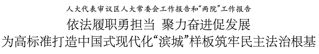 审议中,代表们纷纷对区人大常委会2025年的各项工作成效给予充分肯定,对报告表示赞同。代表们表示,报告客观反映了过去一年区人大常委会的各项工作,报告内容详实具体,阐释全面深刻。一年来,区人大常委会坚持以习近平新时代中国特色社会主义思想为指导,全面贯彻落实党的二十大和二十届历次全会精神,深入贯彻落实习近平法治思想、习近平总书记关于坚持和完善人民代表大会制度的重要思想,认真贯彻习近平总书记视察天津重要讲话精神和对天津工作一系列重要指示要求,按照市委、区委全会部署,坚持党的领导、人民当家作主、依法治国有机统一,深入践行全过程人民民主,围绕中心、服务大局,依法履职、担当尽责,为推进实施滨海新区高质量发展支撑引领行动,奋力打造中国式现代化“滨城”样板作出了积极贡献。