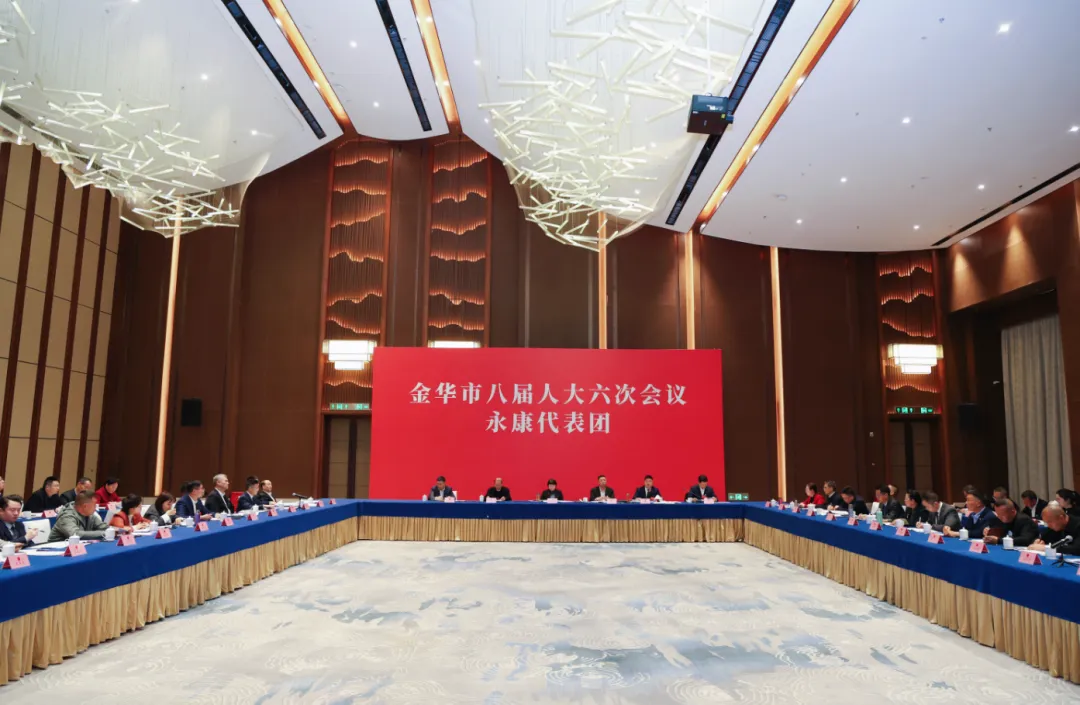 1月21日下午,参加金华市八届人大六次会议的永康代表团审议金华市政府工作报告,审查“十五五”规划纲要草案和计划、财政报告。金华市人大代表、永康市委书记胡勇春参加审议。