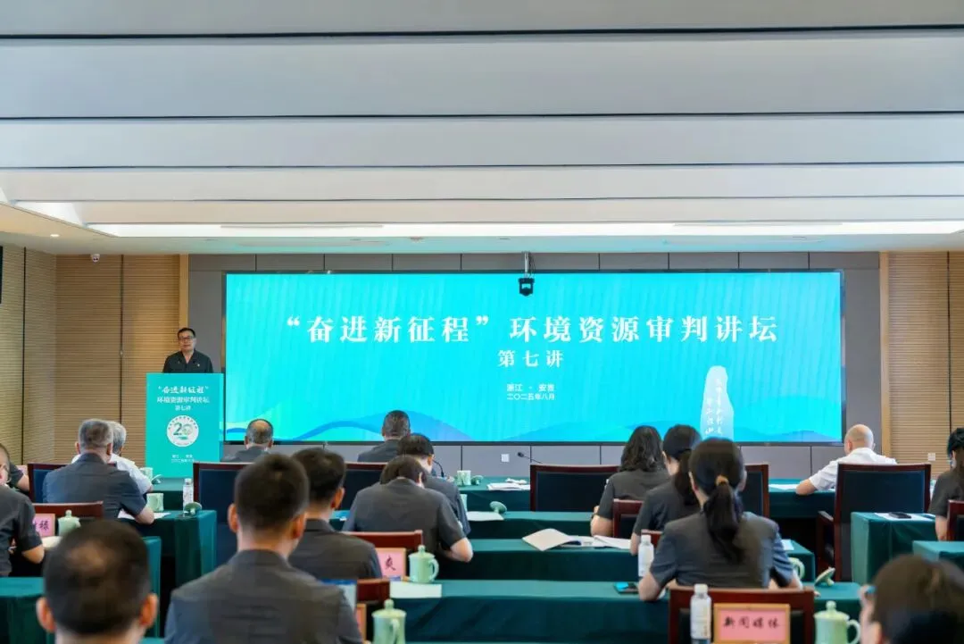 2025年8月12日,最高人民法院“‘奋进新征程’环境资源审判讲坛”第七讲在“两山”理念发源地——浙江省安吉县举行。来自全国8个省市法院的代表和院校专家学者齐聚一堂,深入探讨环境资源审判工作的经验与发展方向。此次讲坛旨在为全国法院环境资源审判工作搭建交流学习的平台,共同感悟“两山”理念的真理力量与实践伟力,进一步凝聚加强生态环境司法保护的共识,推动环境资源审判工作再上新台阶。安吉法院代表浙江法院在会上作主题发言。