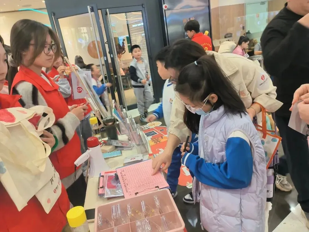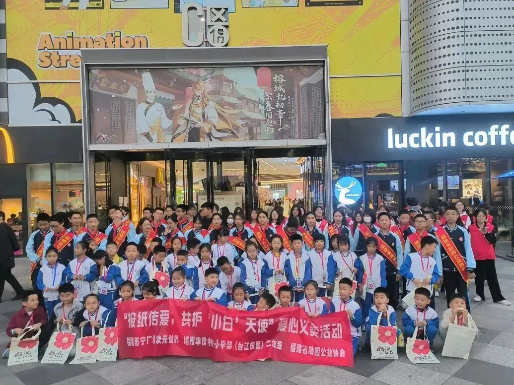 11月23日下午15时,福州苏宁广场次元世界的入口处,暖流与霞光交织。福州华伦中学小学部(台江校区)二年级的“小卖报童”们身着整洁校服,以整齐的队列有序集结。每个孩子手中,都提着印有腾讯公益小红花的爱心公益袋,颈间的志愿者挂牌在斜阳下折射出温润的光,那朵小红花仿佛也沾染了暖意,在微风中轻轻摇曳。多名身着统一志愿服的大学生志愿者已提前守候,他们俯身为孩子们整理衣角,细致叮嘱义卖细节,将责任与关怀悄悄传递。