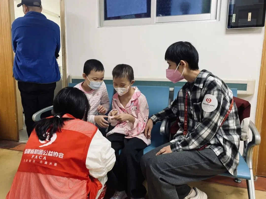 11月5日,在福建省级机关医院,由林泰南、温倩、刘小婷、林景华、林淼、曾鑫等医生的眼科团队,为来自福建省助困公益协会病房教室的白血病儿童开展了一场特别的眼科关爱服务,用专业的检查与温柔的陪伴,为这些正在抗击病魔的“小战士”送去了一份坚实的光明支持。